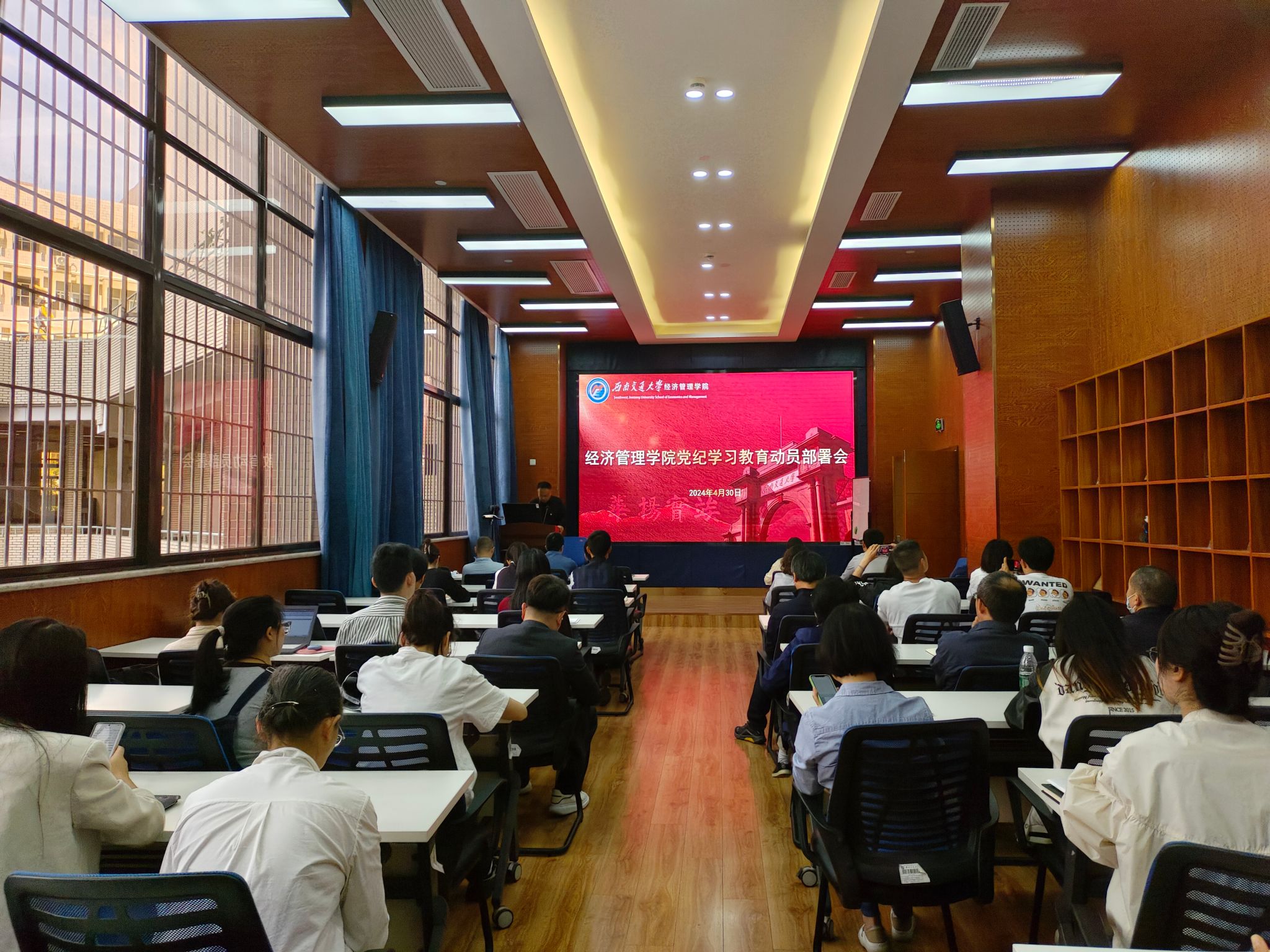 4月30日下午2:30在九里校区零号楼0218教室,经济管理公司党委召开党纪学习教育动员部署会。公司党委书记郭强同志主持会议,党委副书记、纪委书记晏理斌同志作学习教育动员,公司领导班子成员、党委委员、师生各党支部书记和委员参加会议。