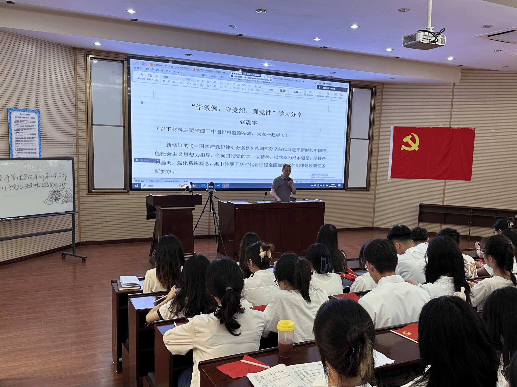5月16日,bevictor伟德本科第二党支部在信息楼0202教室开展党纪学习教育—“学条例,守党纪,强党性”主题党日活动,以促进广大党员深刻学习领悟《中国共产党纪律处分条例》,切实做到知纪于心,立纪于身,化纪于行,推动党纪学习教育入脑入心,走深走实。本次活动特别邀请到公司纪委副书记张震宇老师到场进行学习分享。