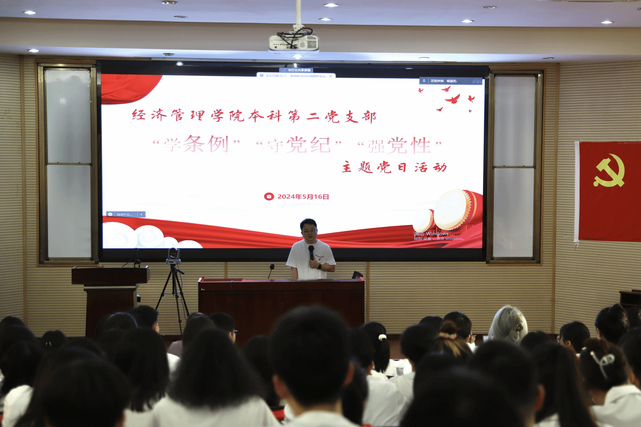 活动伊始,党支部书记陈建奇为嘉宾张震宇老师介绍了支部的情况,本科第二党支部以党团建设促思政育人实效为宗旨,坚持实施“三联动两融合一阵地”工作机制,充分发挥党支部的战斗堡垒作用,促进党支部工作创新发展。接着,张震宇为本科第二党支部的全体同志带来党纪学习教育专题分享。张老师主要从政治纪律、组织纪律、廉洁纪律、群众纪律、工作纪律、生活纪律六个方面带领同学们原原本本、逐条逐章深入学习《中国共产党纪律处分条例》,并结合实际案例生动地阐述了党纪学习教育的重要性,启示同学们要常敲思想警钟,常存敬畏之心,常紧纪律之弦,结合实践不断加深对党的纪律规矩的学习、理解与认识,筑牢思想及纪律的防线。