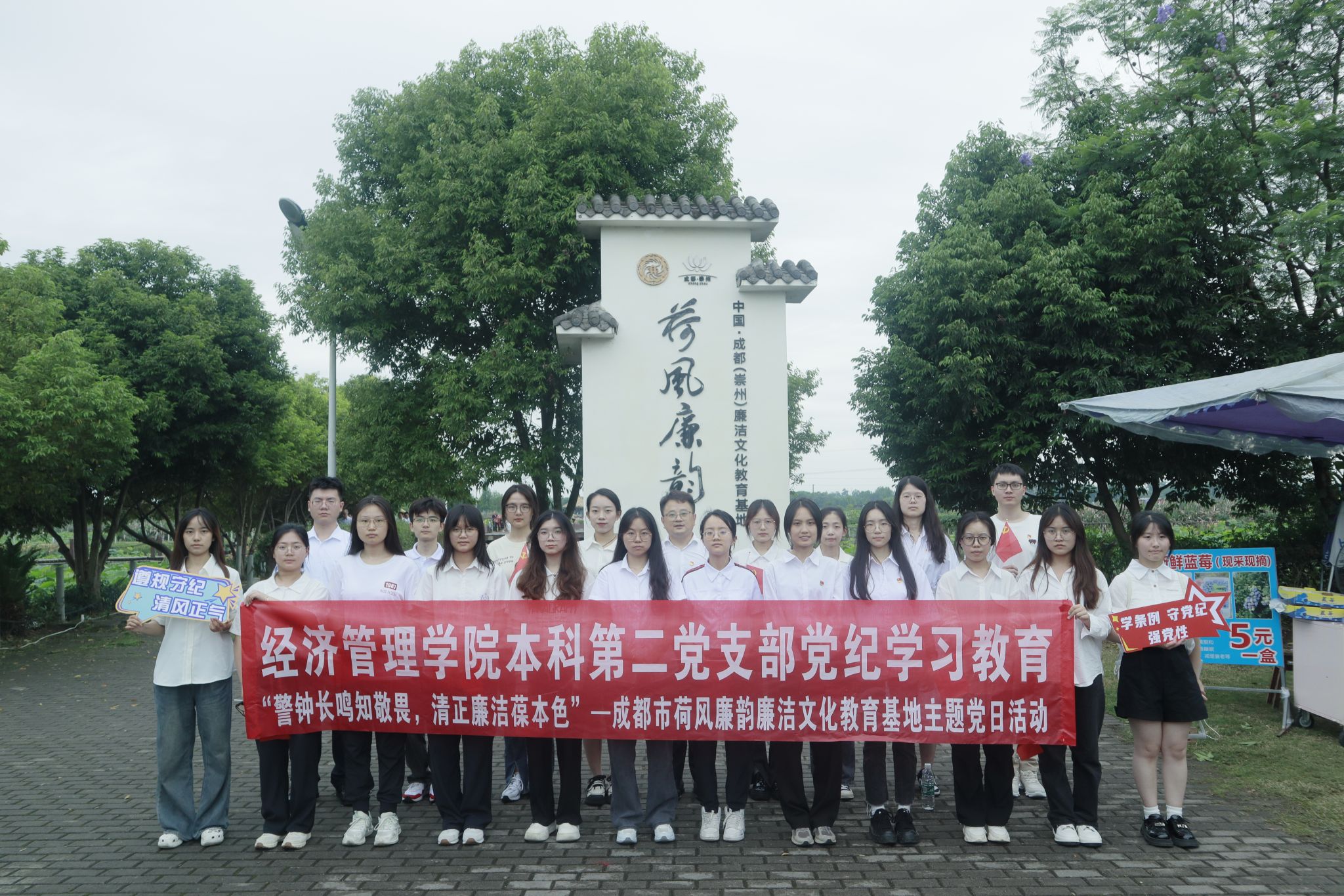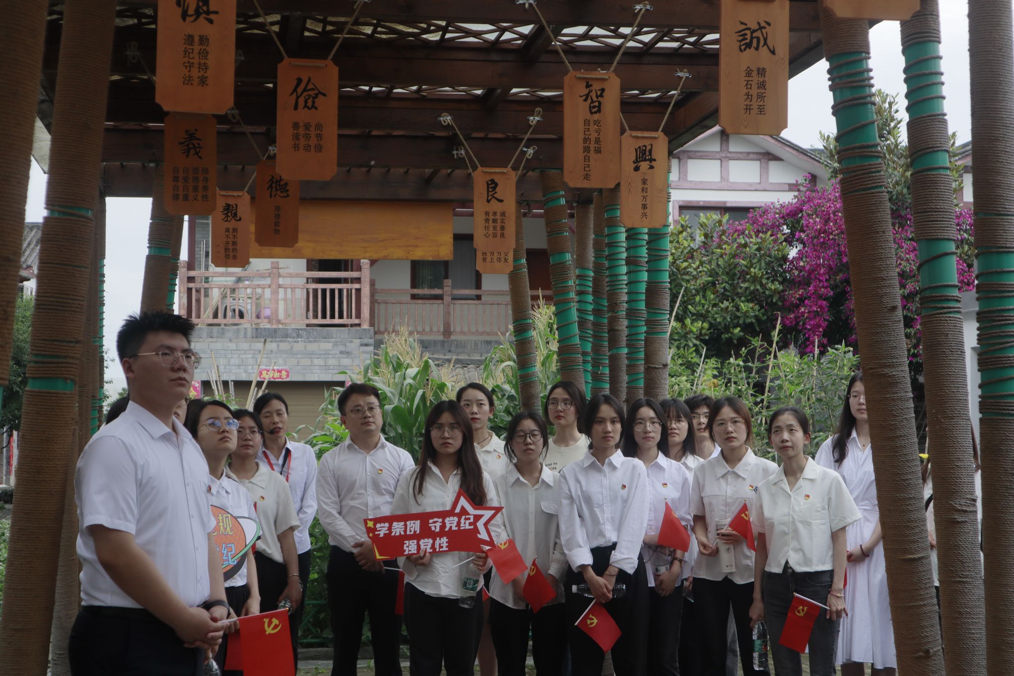 为扎实推进党纪学习教育,切实做到知纪于心,立纪于身,化纪于行,推动党纪学习教育入脑入心,走深走实,进一步抓好廉洁文化建设,筑牢拒腐防变的思想道德防线。2024年6月7日,bevictor伟德本科第二党支部22名党员、积极分子在党支部书记陈建奇带领下,前往位于四川省崇州市隆兴镇的“荷风廉韵”廉洁文化教育基地,实地开展党纪学习教育——“警钟长鸣知敬畏,清正廉洁葆本色”主题党日活动。
