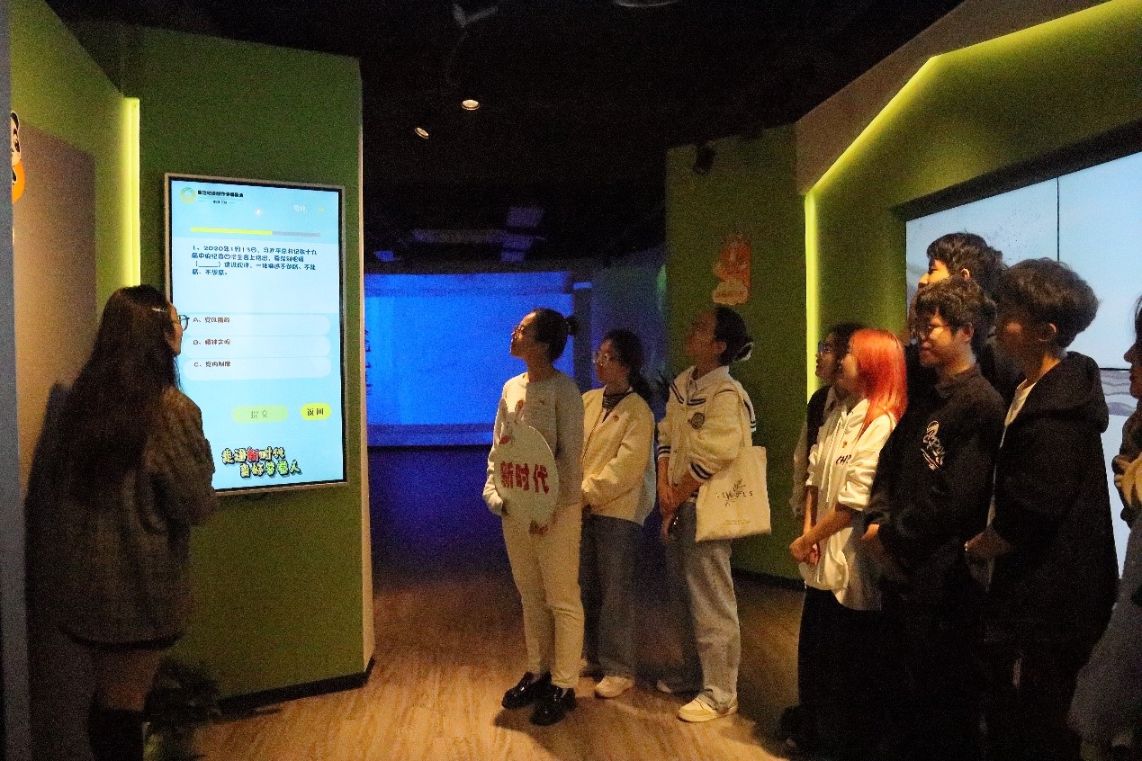 活动中,成都动漫廉洁基地的负责人向大家介绍了基地的logo设计和历史,让同学们在讲解过程中领悟到廉洁的深层次内涵。随后,通过让同学们观看基地自己制作的关于苏轼的家风廉洁视频,再次领悟到廉洁对于社会、家庭、个人的重要性。接下来,基地负责人带领同学们感受了270°沉浸式宣传片“浣花莲”,同学们通过沉浸式的体验,从不同职业、不同群体应该如何做到廉洁自律有了感性的认识。在动漫廉洁基地,同学们还集体参与了廉洁答题以及关于廉洁自律的体感游戏等。多途径,全情投入式的关于廉洁的现场教学让同学们切身受到了廉洁文化的浸润和熏陶。