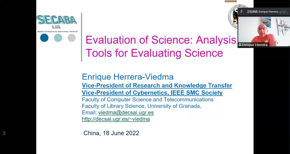 2022年6月18日下午3点,西班牙格拉纳达大学Enrique Herrera-Viedma教授应邀以“Evaluation of Science: Analysis Tools for Evaluating Science”为题为公司师生带来了一场精彩的学术分享,本次学术活动由公司信息系统与运营管理系刘盾教授主持,公司李聪聪老师及70多名研究生参加了本次线上学术讲座。