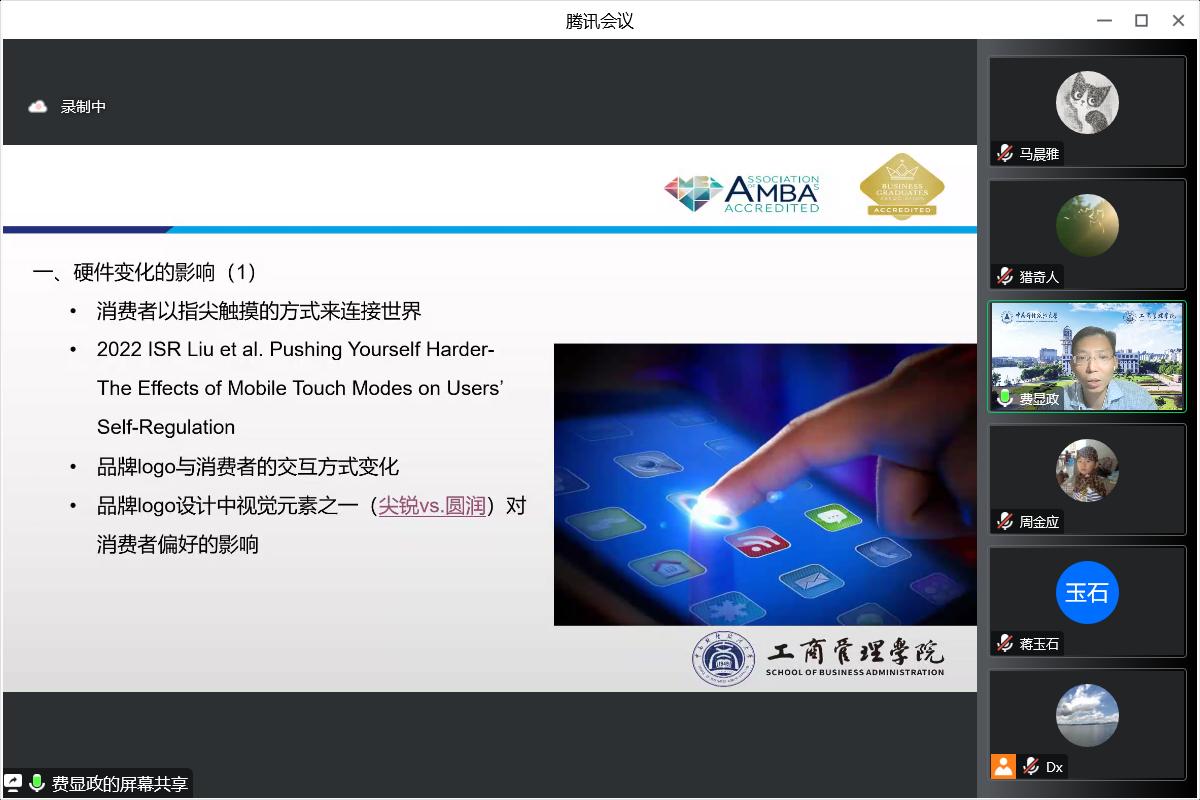 随后,费显政教授着重分析了“中国最新的本土实践问题——世界的前沿”中最为典型的“移动互联网和新媒体带来的变化”,即“指尖的蝴蝶效应”,从“硬件变化的影响”、“前置场景所引发的蝴蝶效应”、“所嵌入场景的潜移默化”等角度归纳解读其发表于Journal of Consumer Psychology、《管理世界》、《南开管理评论》等国内外权威期刊的学术论文,为师生探索如何扎根中国实践提炼科学问题提供了借鉴和指导。