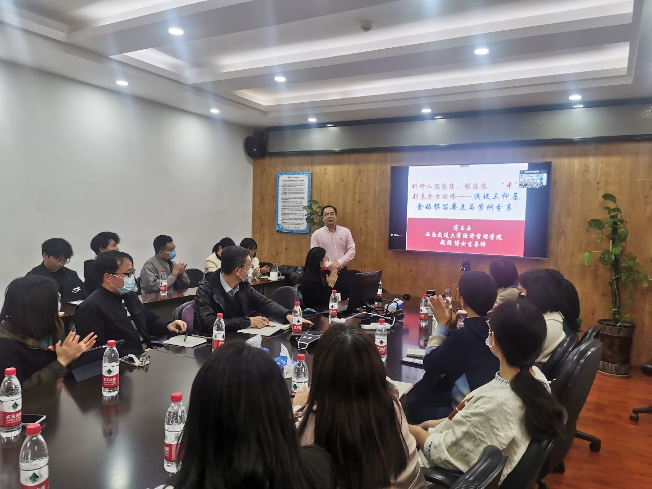 2022年11月24日下午3点,公司在九里校区信息楼0607召开2023年基金申报交流会(第二场)。受疫情影响,此次会议采取线上线下相结合的方式,全院40余位教师和博士生参加会议。会议由经济管理公司党委书记王斌主持,公司市场学系蒋玉石教授分享了申报教育部人文社科基金、国家社会科学基金和国家自然科学基金项目的经验。