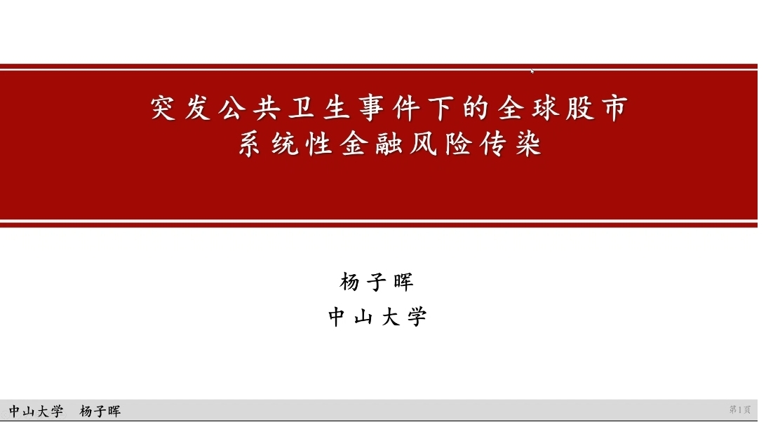 2021年10月19日下午15时,中山大学岭南公司杨子晖教授在线上开展了题为“突发公共卫生事件下的全球股市系统性金融风险传染”的学术报告,bevictor伟德金融与财务学系马锋副教授主持了此次讲座。