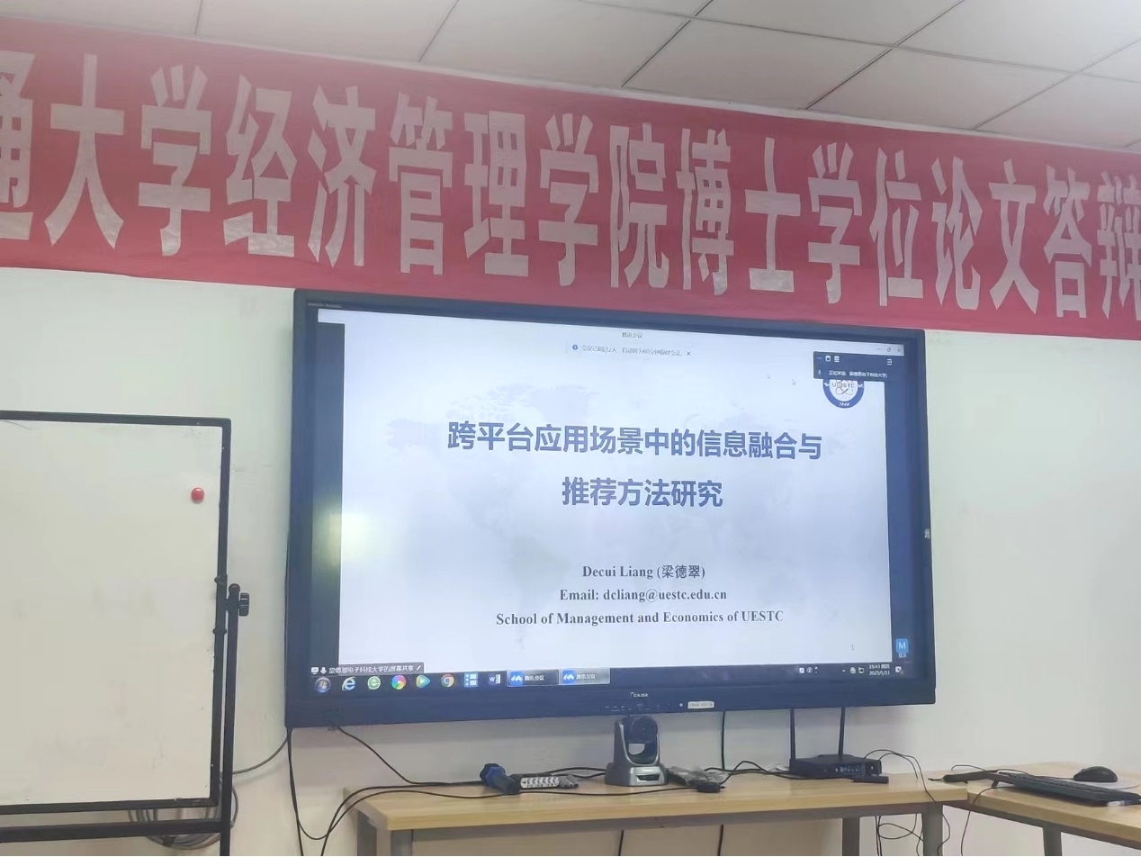 梁德翠,电子科技大学、研究员、博导,英国计算机协会会士(BCS Fellow)、英国皇家艺术学会会士(RSA Fellow)、IEEE Senior Member,先后入选了全球前2%顶尖科学家榜单、天府万人计划、四川省学术和技术带头人后备人选、电子科技大公司百人计划等,担任Journal of Intelligent & Fuzzy Systems等4个国际期刊的副主编和编委。现研究方向为信息管理与商务智能、大数据分析与决策等,已在Omega、IEEE TEM、IEEE SMCA、IEEE TFS、INS、AOR、JORS、CAIE、KBS、ESWA国内外重要主流期刊会议上发表论文百余篇,其中15篇入选ESI高被引用论文/ESI热点论文、SCI检索79篇、SSCI检索26篇,参与编著5部,主持国家自然科学基金项目等纵向项目10余项,主研国家重点研发计划2项。曾获四川省科技进步二等奖1项、四川省哲学社会科学优秀成果二等奖2项和三等奖1项。
