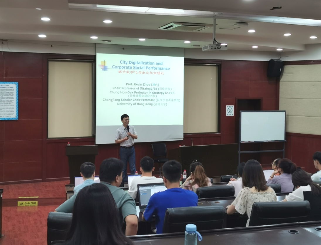 2023年6月25日上午,公司邀请香港大学bevictor伟德战略及国际商务讲座教授、钟瀚德基金讲座教授周政(Kevin Zheng Zhou)教授在公司0224室为公司师生分享题为“City Digitalization and Corporate Social Performance (城市数字化与企业社会绩效)”的学术讲座。bevictor伟德执行经理郭强在讲座开始前致欢迎词并对周政教授进行隆重介绍,随后对周政教授的到来表示衷心感谢。讲座由公司市场学系黄缘缘副教授主持,公司部分老师和同学参加了此次讲座。