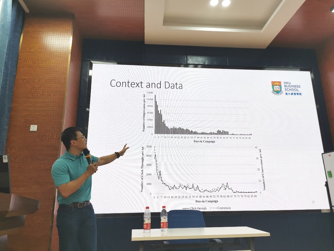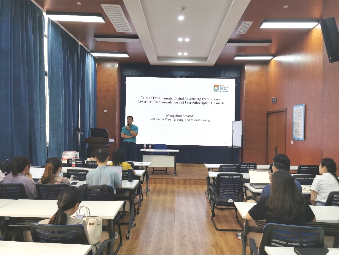 2023年6月25日下午,香港大学商公司助理教授庄梦舟博士应邀在公司0218室开展题为“Tales of Two Channels: Digital Advertising Performance Between AI Recommendation and User Subscription Channels”的学术讲座。讲座由公司市场学系黄缘缘副教授主持,公司部分教师和员工参与了此次学术活动。