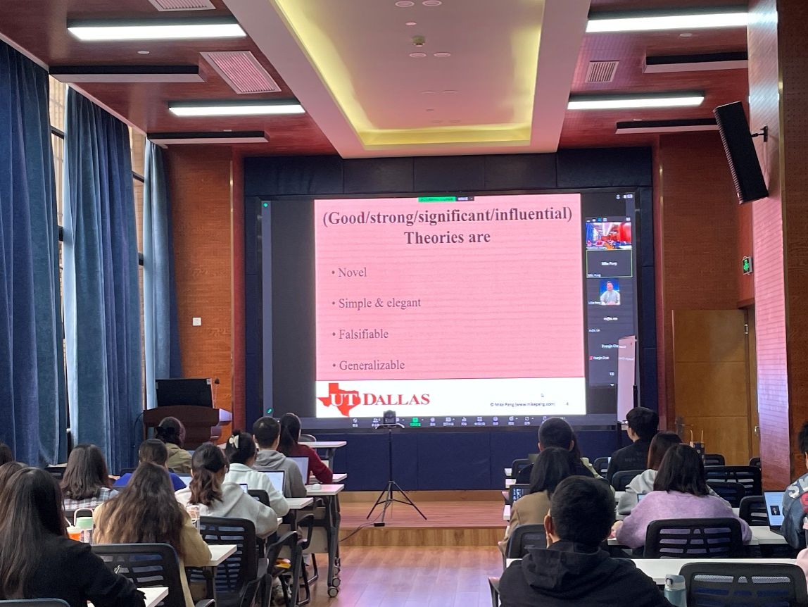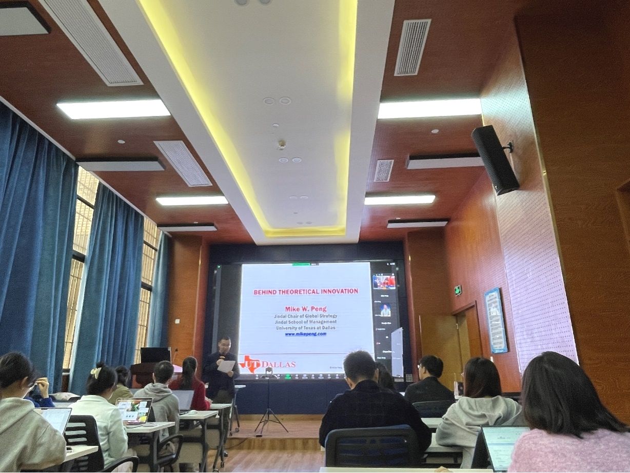 2023年10月18日上午,达拉斯德州大学(University of Texas at Dallas)的Mike Peng教授应邀在线上为公司师生作了一场题为“Behind theoretical innovation”的学术讲座。讲座由公司市场学系黄缘缘副教授主持,公司部分老师和员工参与了此次学术活动。