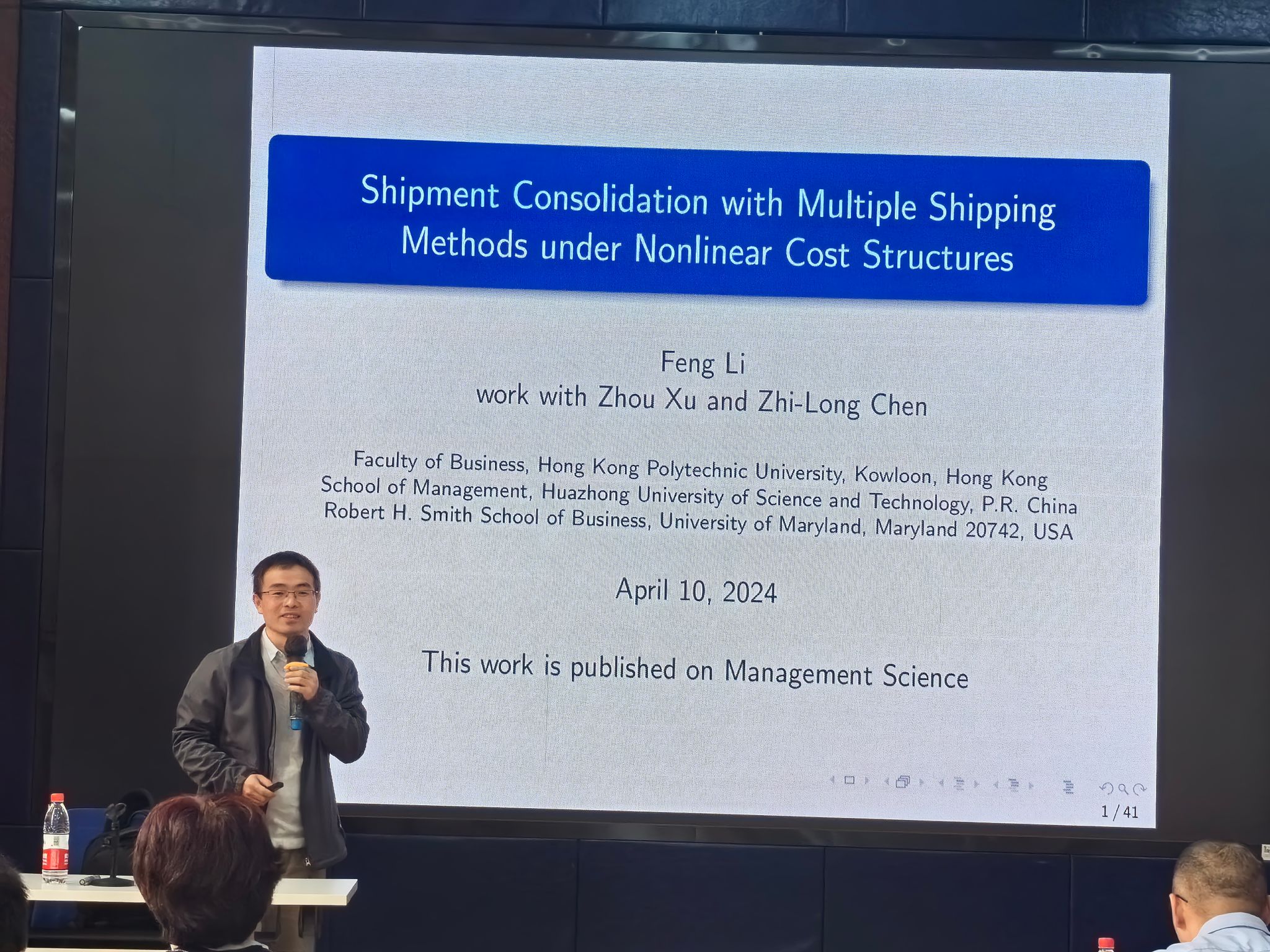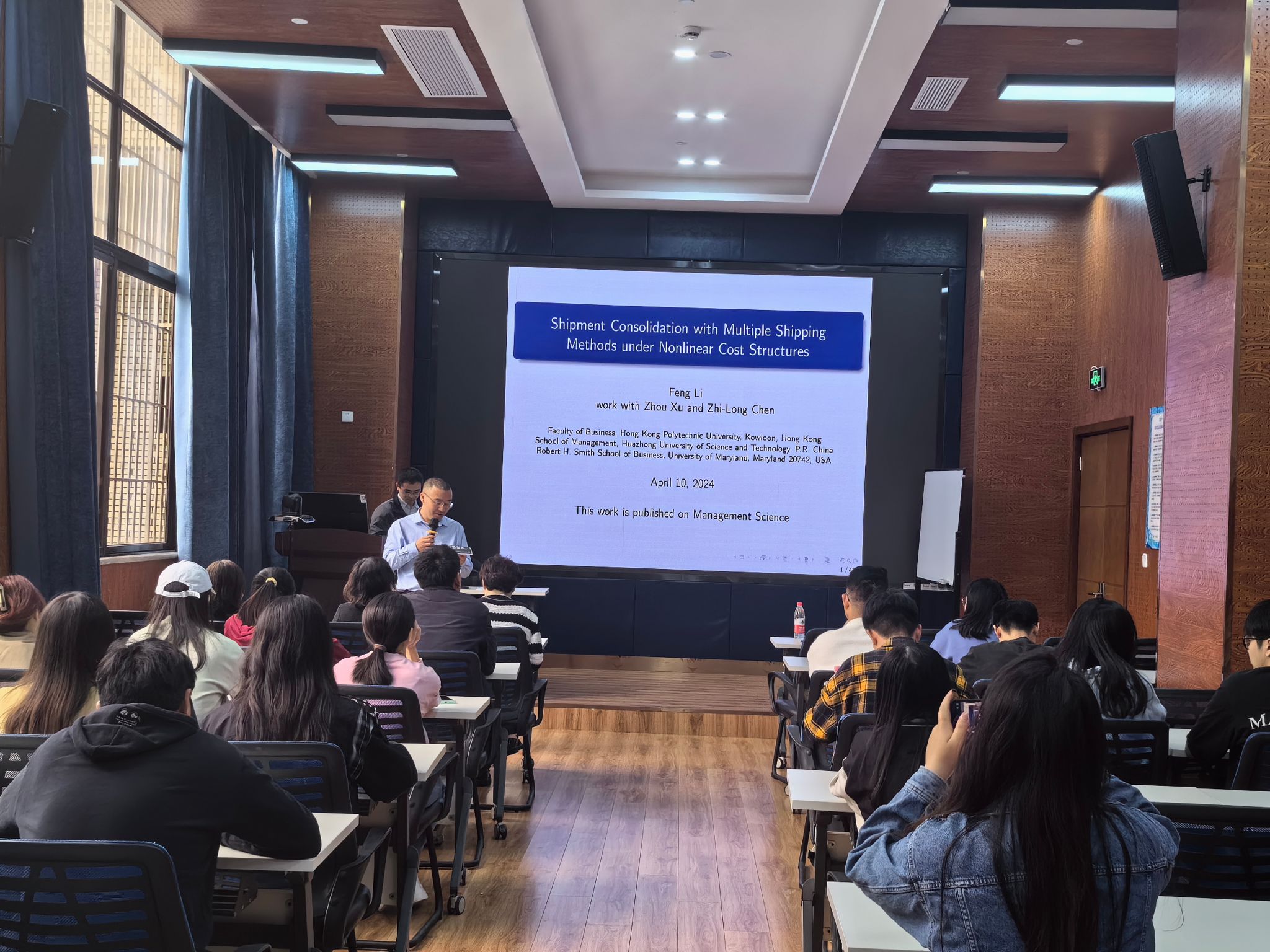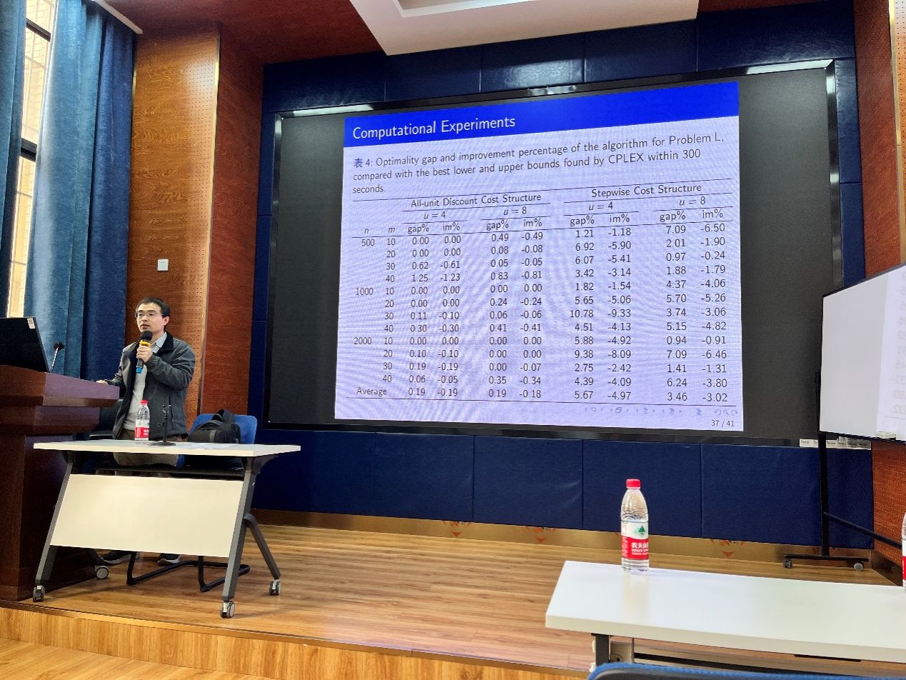2024年4月10日,华中科技大学李锋教授应邀在bevictor伟德为公司报师生分享题为“基于非线性费用函数下多运输模式的订单匹配问题”的学术讲座。本次学术活动由公司副经理聂佳佳教授主持,公司部分教师及研究生参加了此次学术活动。