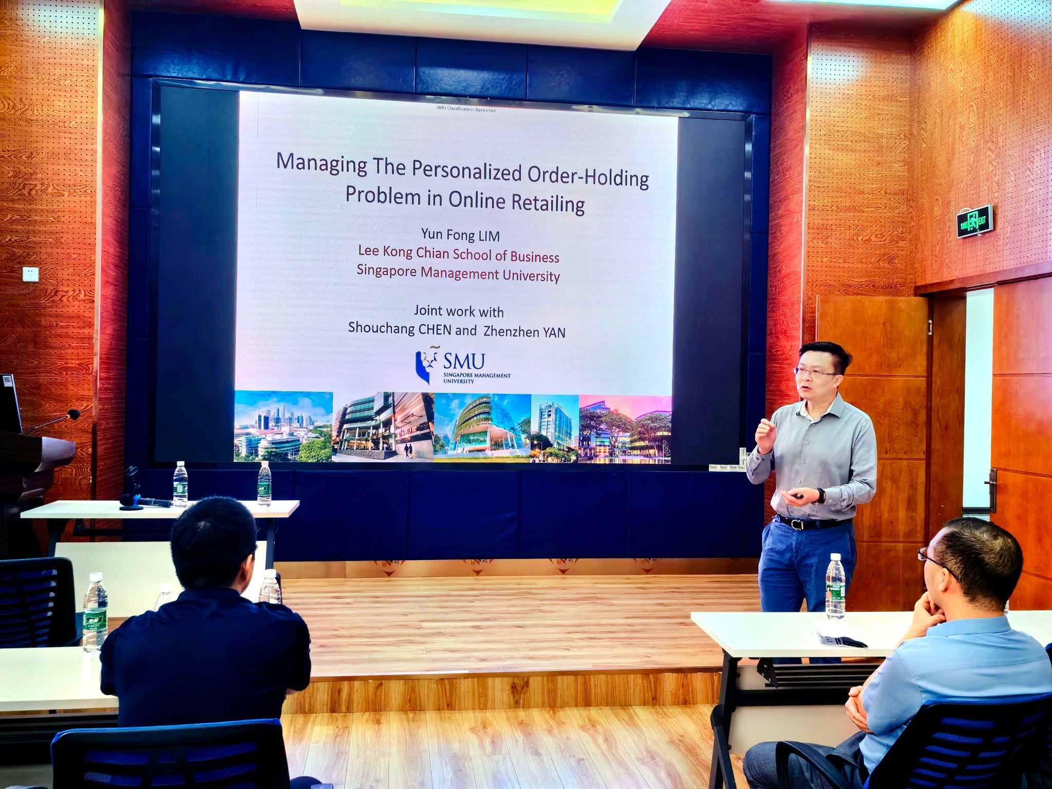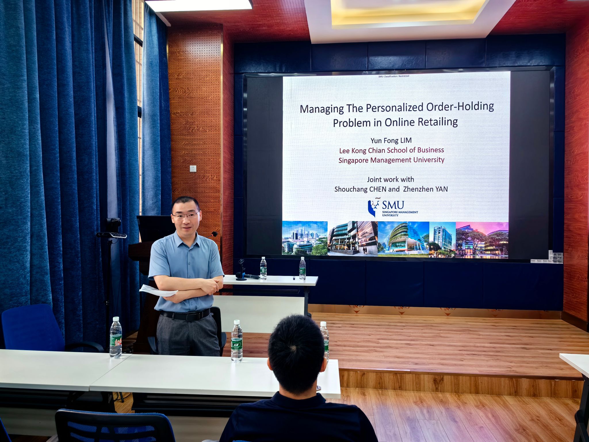 2024年4月25日新加坡管理大学林云峰教授应邀在公司0218室为公司师生作了题为“Managing The Personalized Order-Holding Problem in Online Retailing”的学术讲座。本次学术活动由公司副经理聂佳佳教授主持,公司经理韩科及部分教师、研究生参加了此次学术活动。聂佳佳教授首先对林云峰教授的学术成果进行了介绍,同时对林云峰教授的到来表示真挚的感谢!