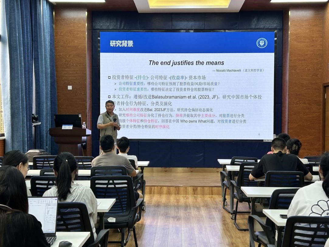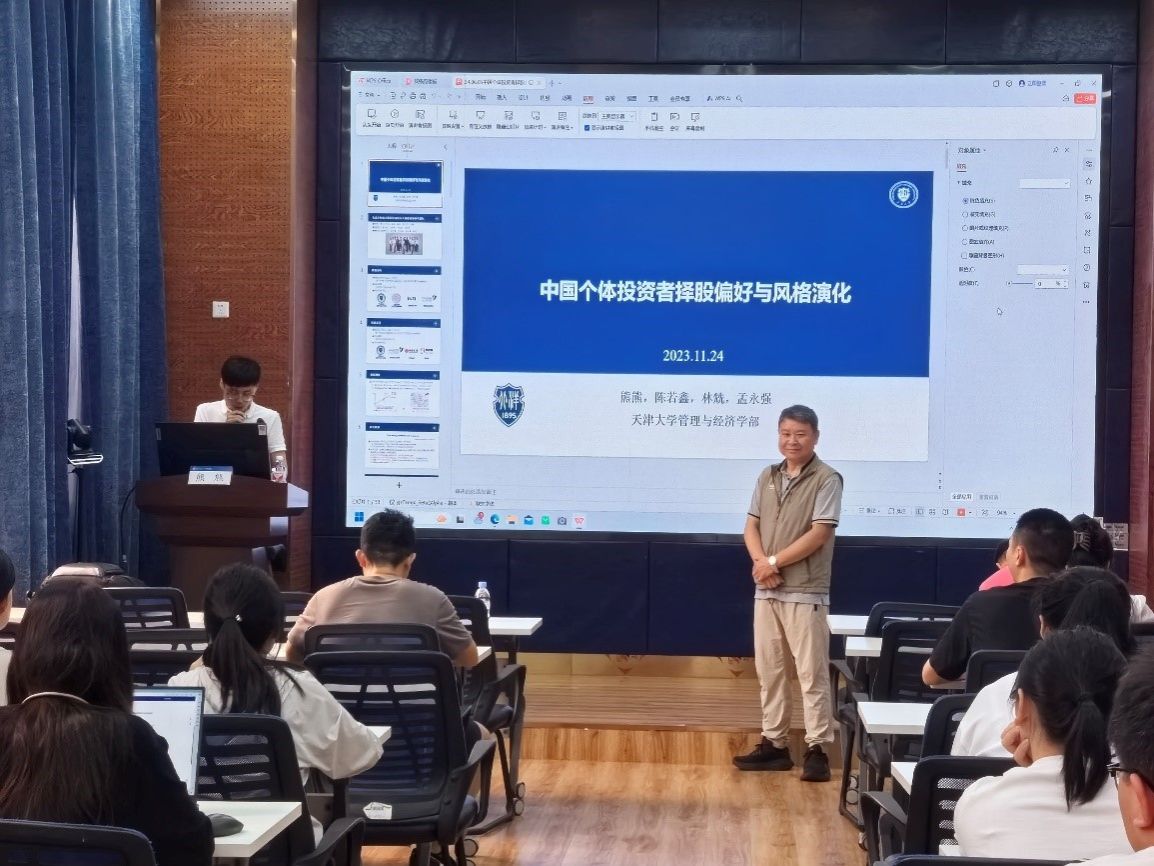 2024年6月4日上午,天津大学管理与经济学部副主任熊熊教授应邀在九里校区零号楼0218室为公司师生作题为“中国个体投资者择股偏好与风格演化”的学术讲座。此次讲座由公司副经理马锋主持,公司部分教师及研究生参加此次讲座。马锋对熊熊教授的学术成果进行了介绍,同时对熊教授的到来表示热烈的欢迎与感谢。