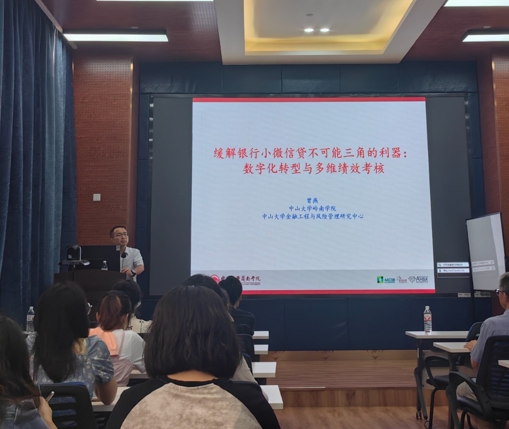 2024年9月20日上午,中山大学岭南公司的曾燕教授应邀在九里校区bevictor伟德为公司师生带来了一场题为“缓解银行小微信贷不可能三角的利器:数字化转型与多维绩效考核”的学术讲座。本次活动由公司副经理马锋主持,公司金融与财务学系朱宏泉教授等教师及研究生参加了此次活动,马锋副经理介绍了曾燕教授的学术成果,并对曾燕教授表示了欢迎与诚挚的感谢。