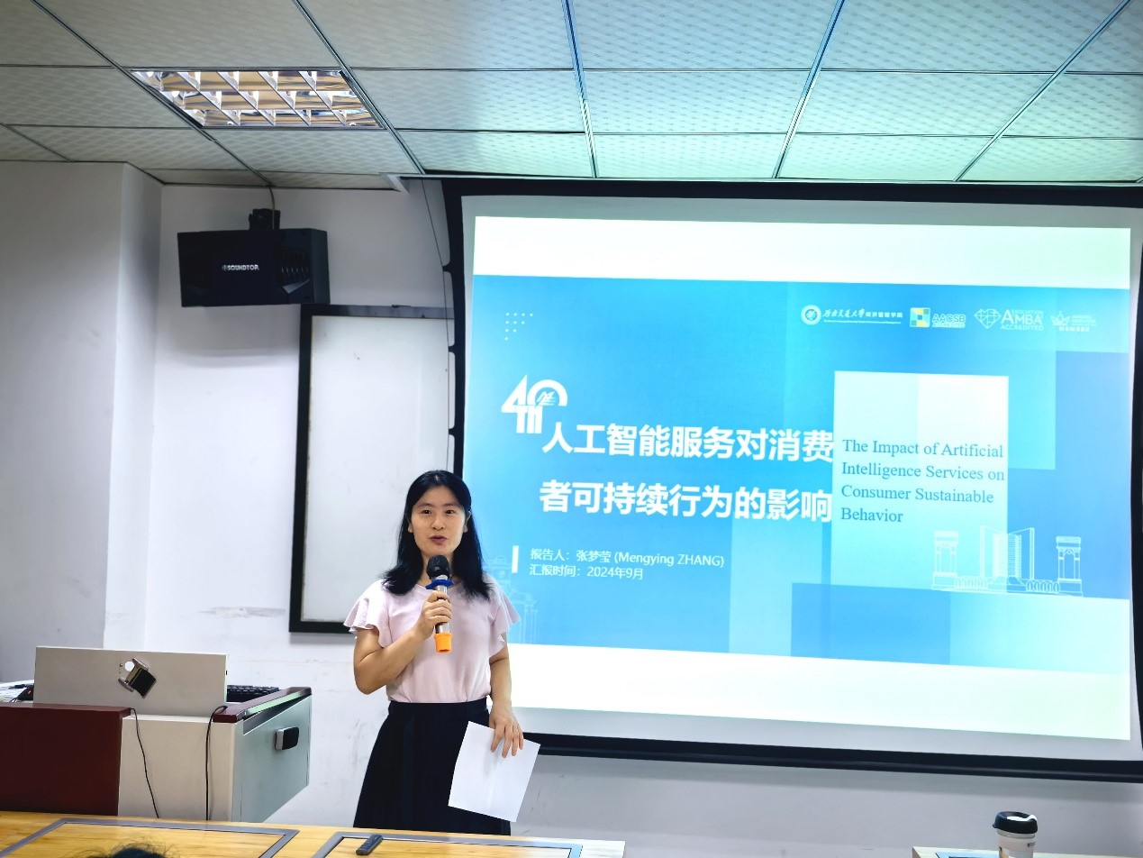 2024年9月27日上午10点,伟德bevictor中文版九里校区零号楼0302室举办了新青年教师系列讲座。本次讲座邀请了bevictor伟德市场学系的助理教授张梦莹博士,围绕“人工智能服务对消费者可持续行为的影响”这一主题展开,公司部分师生到场聆听,讲座由市场学系副系主任范春梅副教授主持。