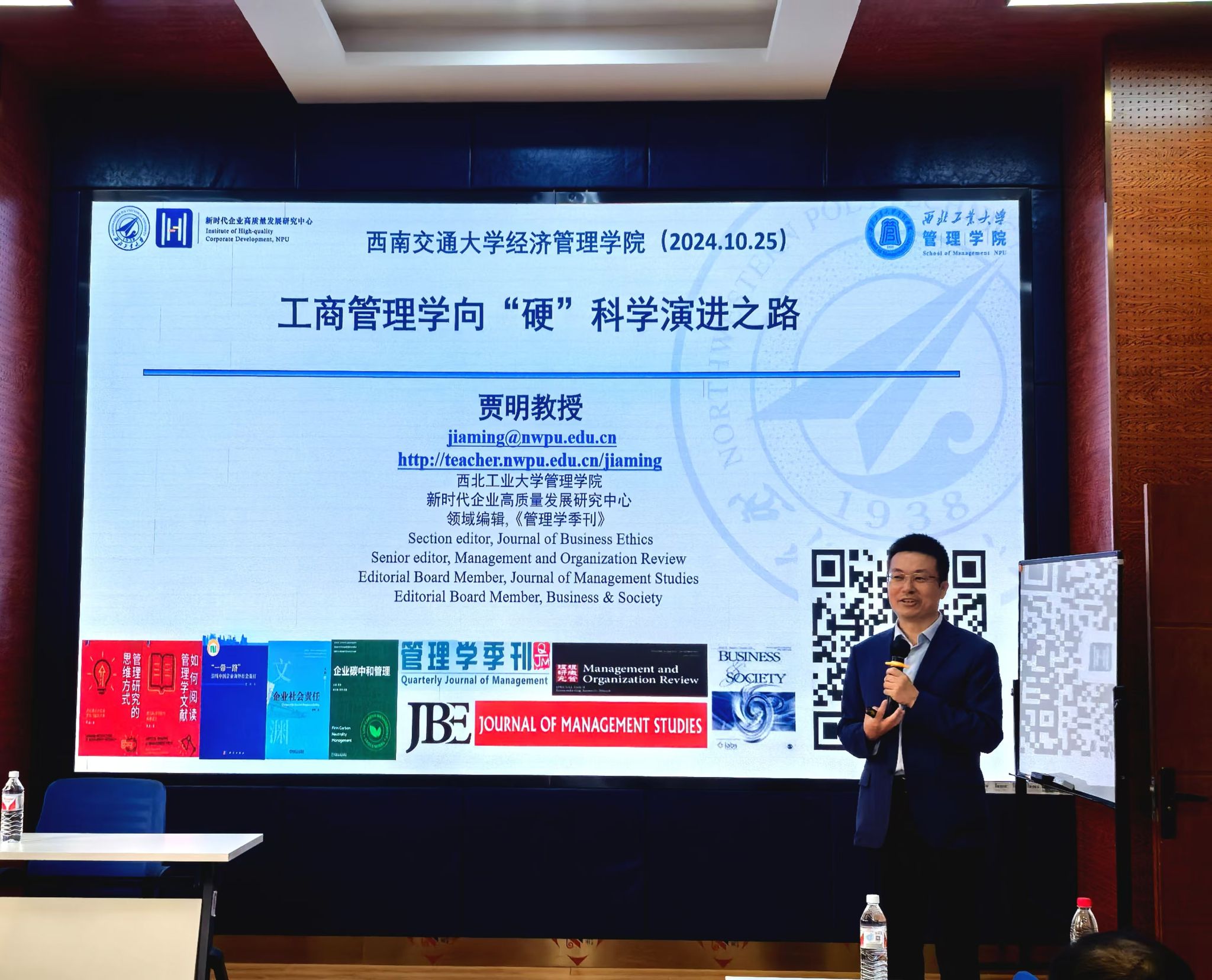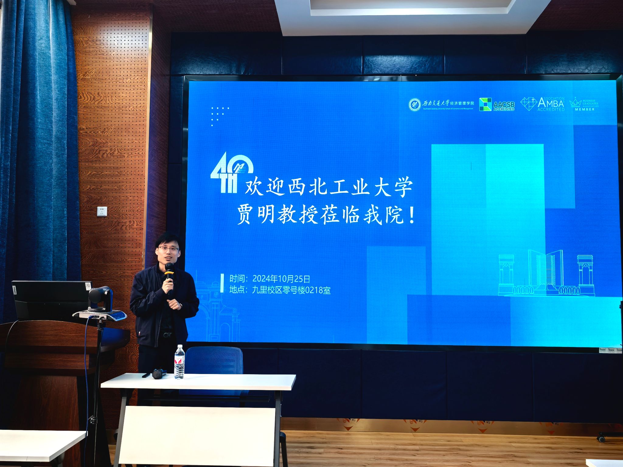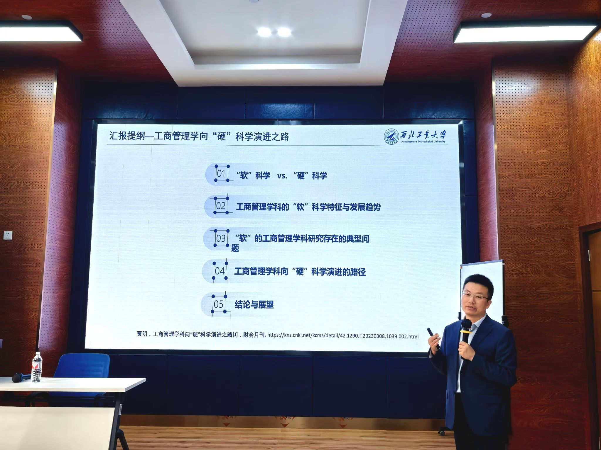 2024年10月25日下午,西北工业大学管理公司贾明教授应邀在九里校区bevictor伟德为公司师生带来了一场聚焦于“工商管理向硬科学演进之路”的学术讲座。本次学术活动由副经理马锋主持,公司部分教师及研究生60余人参加此次活动,副经理马锋介绍贾明教授的学术背景与成就,并代表公司对贾明教授表示欢迎与诚挚的感谢。