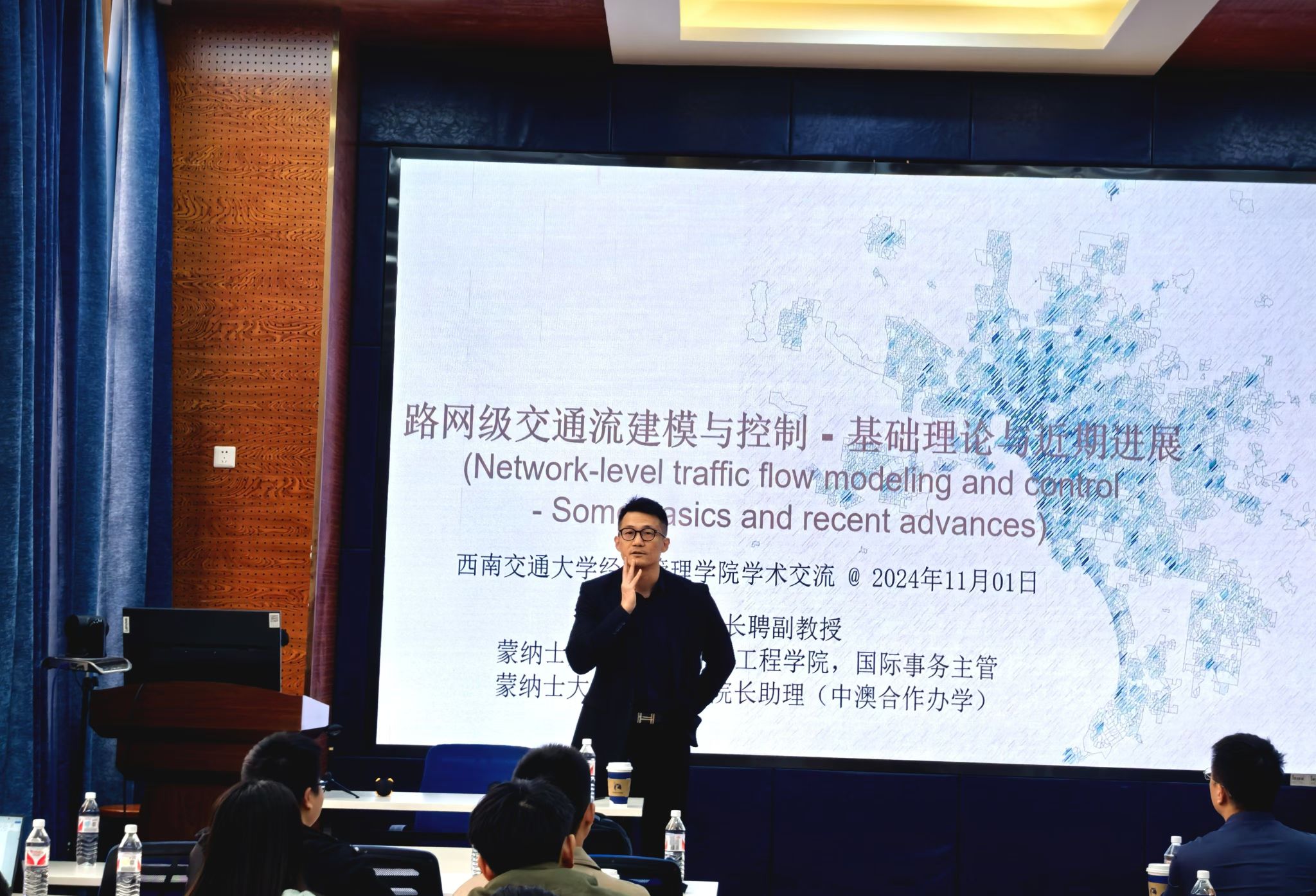 2024年11月1日上午,特邀国际知名的交通流研究专家、莫纳什大学副教授郑楠应邀在bevictor伟德为师生带来了一场主题为“网络级交通流建模与控制-宏观基本图模型特性与相关研究进展”的校外学者系列讲座。本次学术活动由bevictor伟德经理韩科主持,bevictor伟德及交通运输与物流公司相关专家、老师、研究生共80余人参与此次学术交流活动。公司经理韩科对郑楠副教授的学术背景与成就进行了介绍,并代表公司对郑楠副教授表示欢迎与诚挚的感谢。