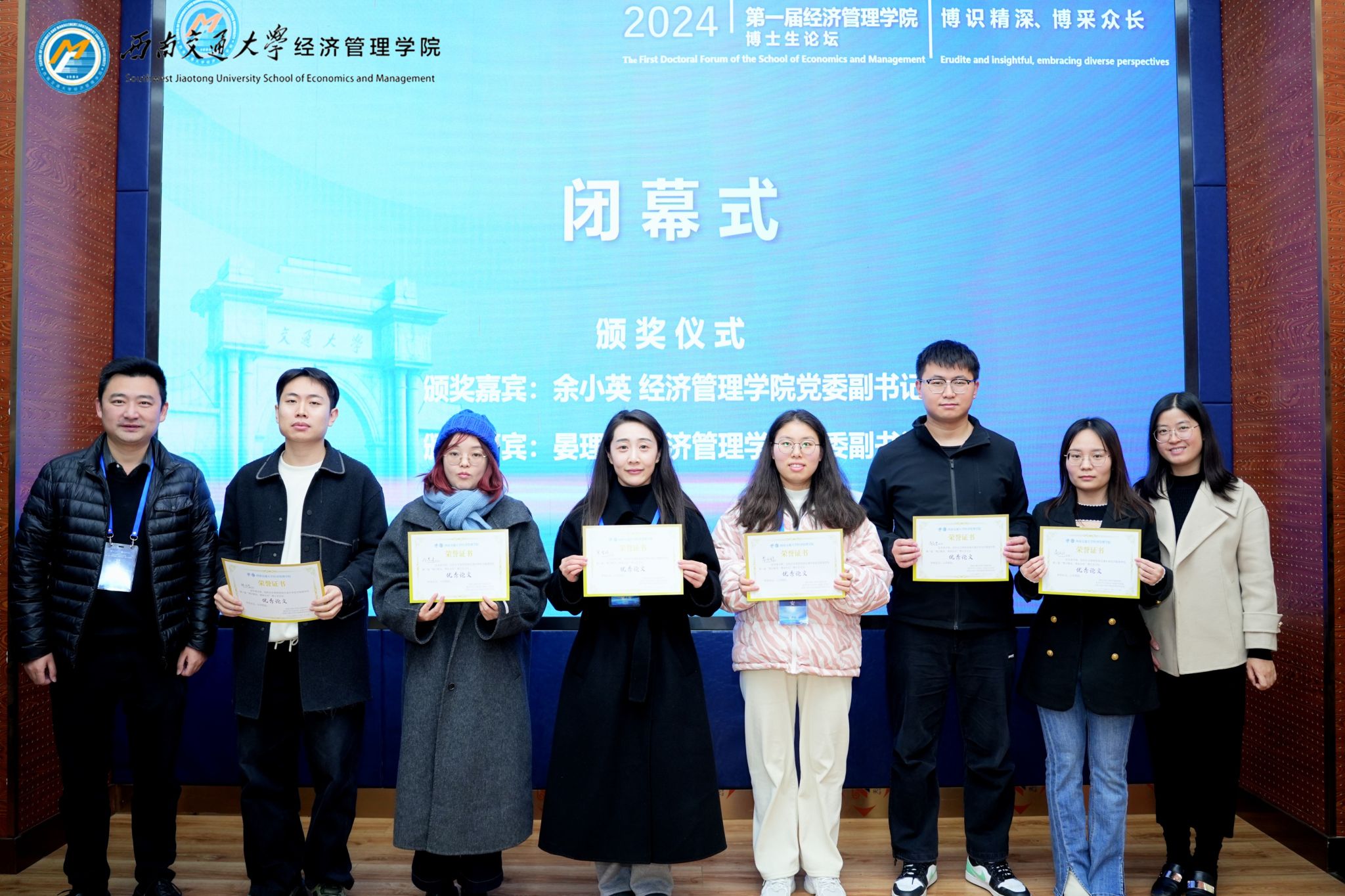 分会场议程后,此次论坛会进入尾声。闭幕式中,经济管理公司党委副书记余小英、晏理斌为本次论坛优秀博士生代表颁奖。