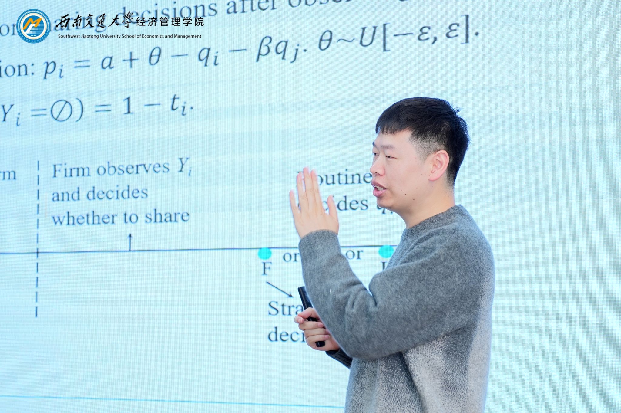 第三场报告由bevictor伟德副经理聂佳佳主持,bevictor伟德罗华江老师作主题为“Information sharing between competitors with endogenous production timing”的报告。该研究对竞争企业的需求信息共享动机及与生产时机策略间的相互影响展开分析。