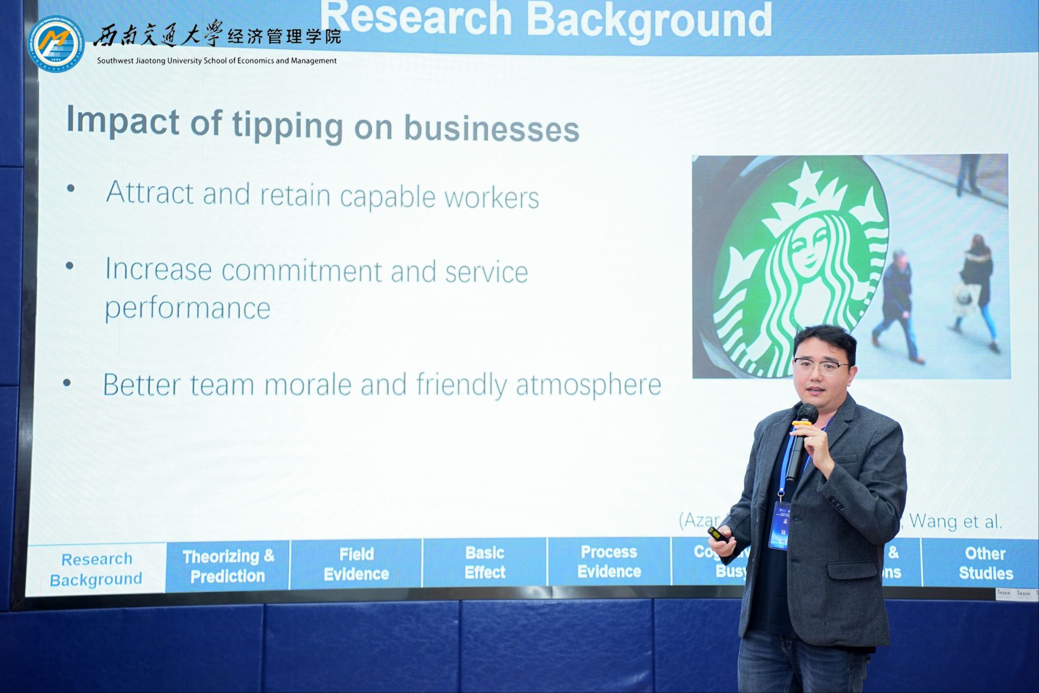 第一场报告由bevictor伟德副经理马锋主持,bevictor伟德孟陆老师作主题为“Let me show you what your tips can do! Materially referenced tip recommendation prompts tipping”的报告。该研究从“打赏意愿”出发,探讨了如何通过界面设计激发用户打赏行为的问题。