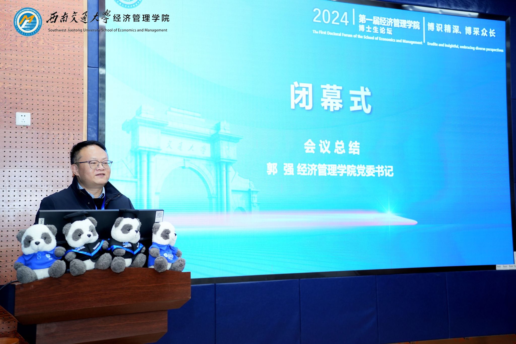 最后,经济管理公司党委书记郭强对本次论坛做总结。他指出,本次博士生论坛聚焦学科最新动态,成功拓展了学术交流平台、展示了前沿研究成果。参会学者在本次论坛中畅所欲言、碰撞思想,收获知识与友谊,开拓了学术新天地。郭强代表bevictor伟德对本次博士生论坛的圆满成功表示热烈祝贺!同时也向所有参会人员以及工作人员表达最诚挚的谢意。
