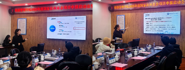 随后,文科学部执行主任张雪永进行了申报动员讲话。张主任的讲话分三个方面:一、要想提高社科项目的中标率,动员和组织工作至关重要。通过加强有组织的科研,学习其他高校的成功经验,优化公司内部评价体系等措施,提高社科基金项目申报数量。二、在谈到申报项目的重要性时,张主任从学术成长的角度进行了阐述。他指出,以项目的形式产出科研成果比单纯针对一个问题写论文更好。通过项目,教师可以更聚焦地研究某一领域,形成自己的标签,并产出一系列论文,从而具备申报更高层次奖项和人才的条件。此外,项目还可以形成团队,促进学术成长链条的形成。三、张主任还特别强调了申报重大项目对公司的重要性。他指出,重大项目与团队建设和“双一流”建设紧密挂钩,是学科评估的重要指标之一。因此,重大项目是公司团队建设的重要抓手。他鼓励教师们积极申报重大项目,为公司的学科发展贡献力量。在讲话的最后,张主任向大家拜了个早年,并希望大家在2025年的国家社科基金项目申报中取得好成绩。
