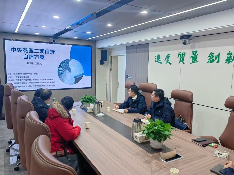 中国华西企业股份有限公司第十二建筑工程公司的东部新区建设公司副总经理童曦等相关负责人 ,热烈欢迎刘继才教授团队的到访,并从公司背景、行业困境及当前项目情况三个方面,详细介绍了公司的现状与发展目标。随后,刘继才教授结合对建筑产业迭代,全过程咨询及建筑新材料、新技术成果转化的优势,介绍了公司工程管理系的整体情况,并对“成都市城市更新-自拆自建”策划咨询实施方案进行了阐述,着重强调了方案的行业落地可行性,并提出以“产学研”深度融合为核心的发展理念,推动高校与企业实现资源共享与优势互补。