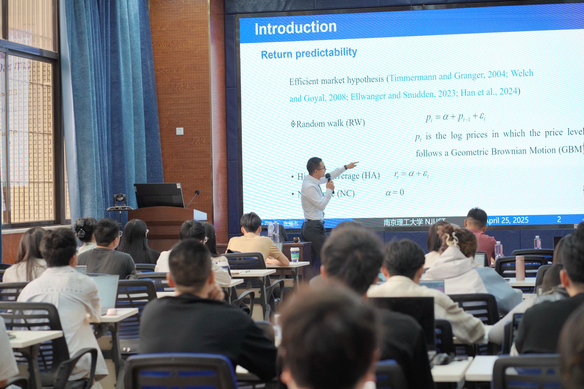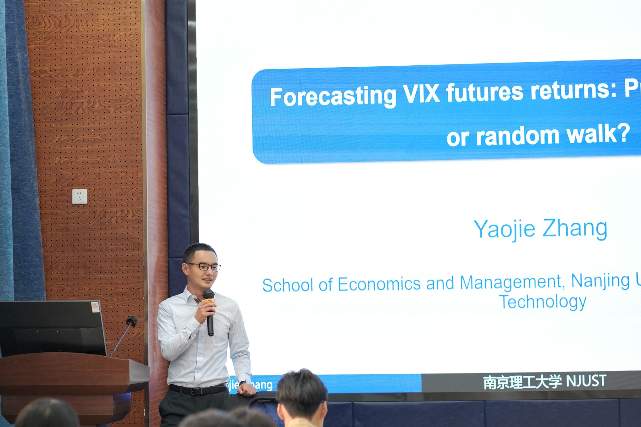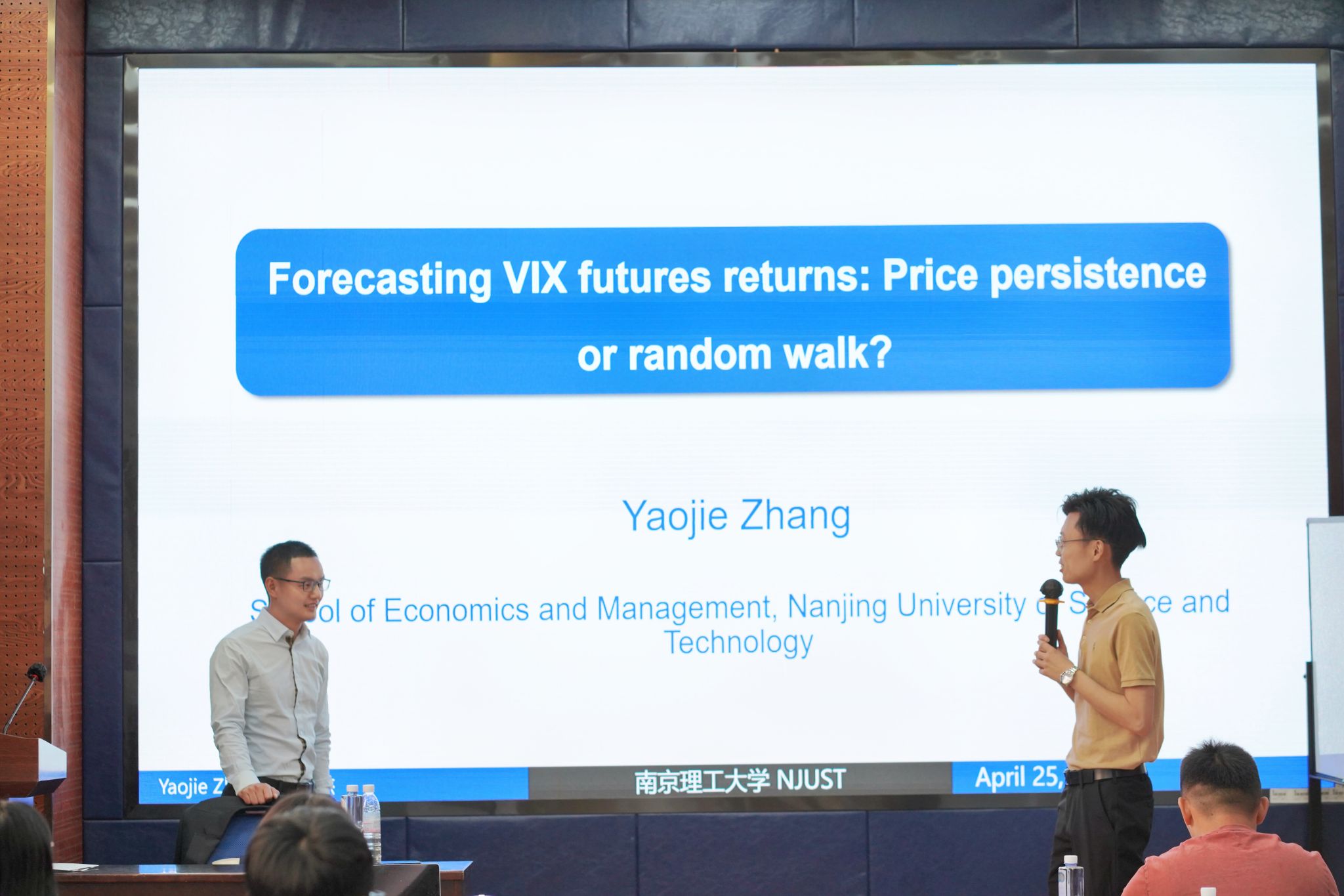 2024年4月25日上午,南京理工大学张耀杰教授应邀在伟德bevictor中文版九里校区bevictor伟德为公司师生带来了一场题为“Forecasting VIX futures returns:Price persistence or random walk?”的学术讲座。本次学术活动由公司副经理马锋主持,公司部分教师及研究生积极参与。马锋副经理在开场时介绍了张耀杰教授的学术成果,并对院优秀员工莅临表示热烈欢迎与诚挚感谢。