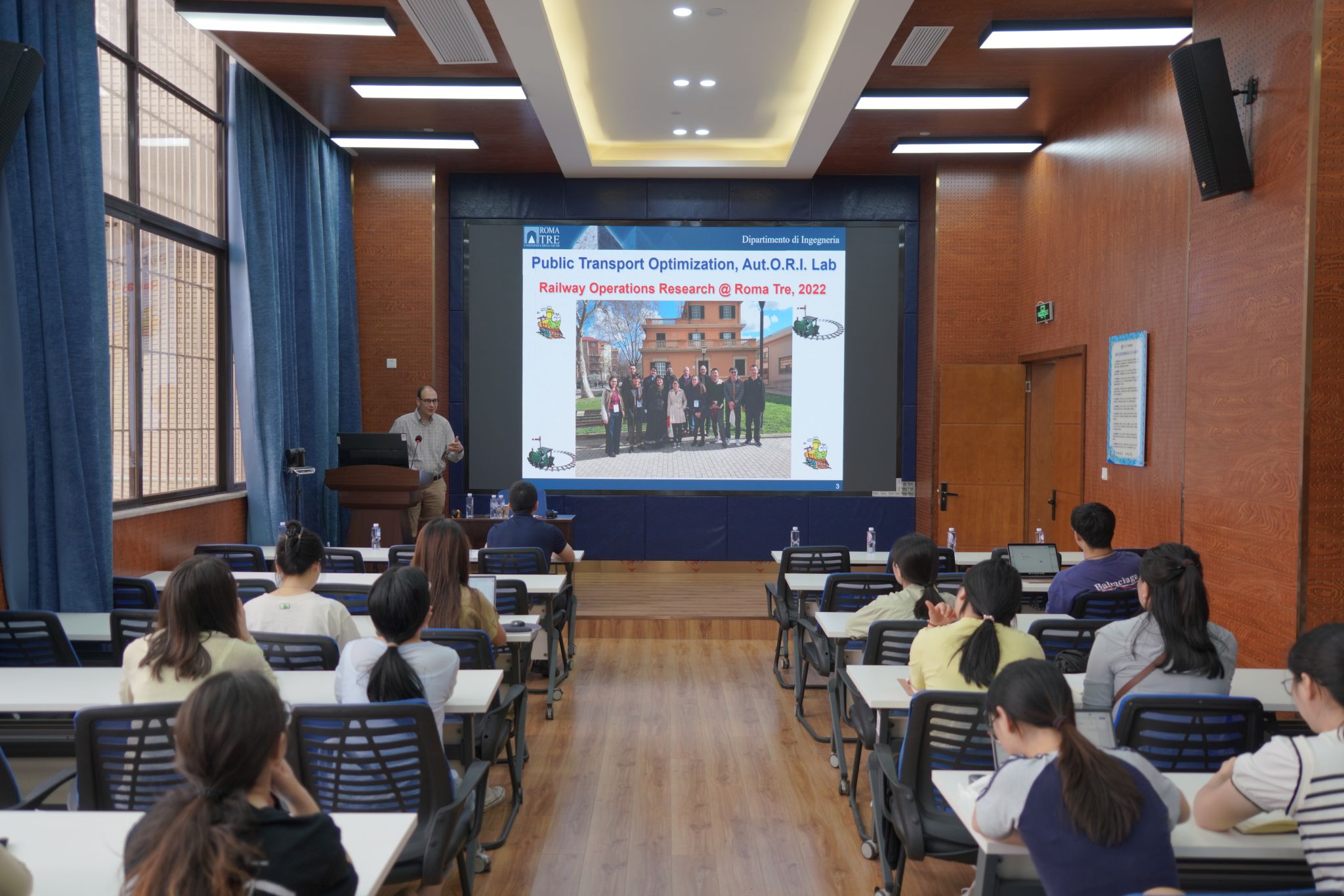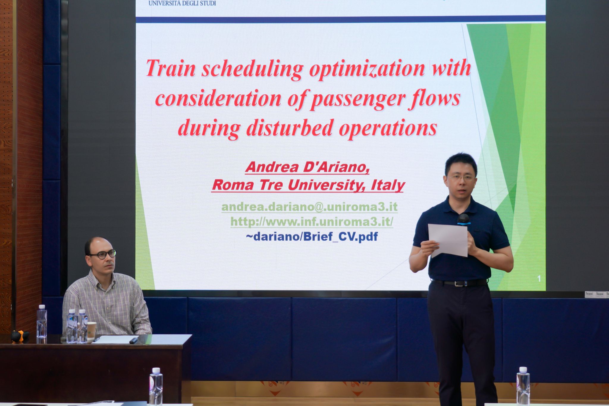 2025年5月8日上午,罗马第三大学Andrea D'Ariano教授应邀为公司师生作题为“Train Scheduling Optimization with Consideration of Passenger Flows During Disturbed Operations”的学术讲座。本次讲座由公司经理韩科主持,公司师生积极参与。经理韩科首先对Andrea D'Ariano教授的学术背景进行了简要介绍,并代表bevictor伟德对D'Ariano教授致以热烈欢迎和诚挚感谢。