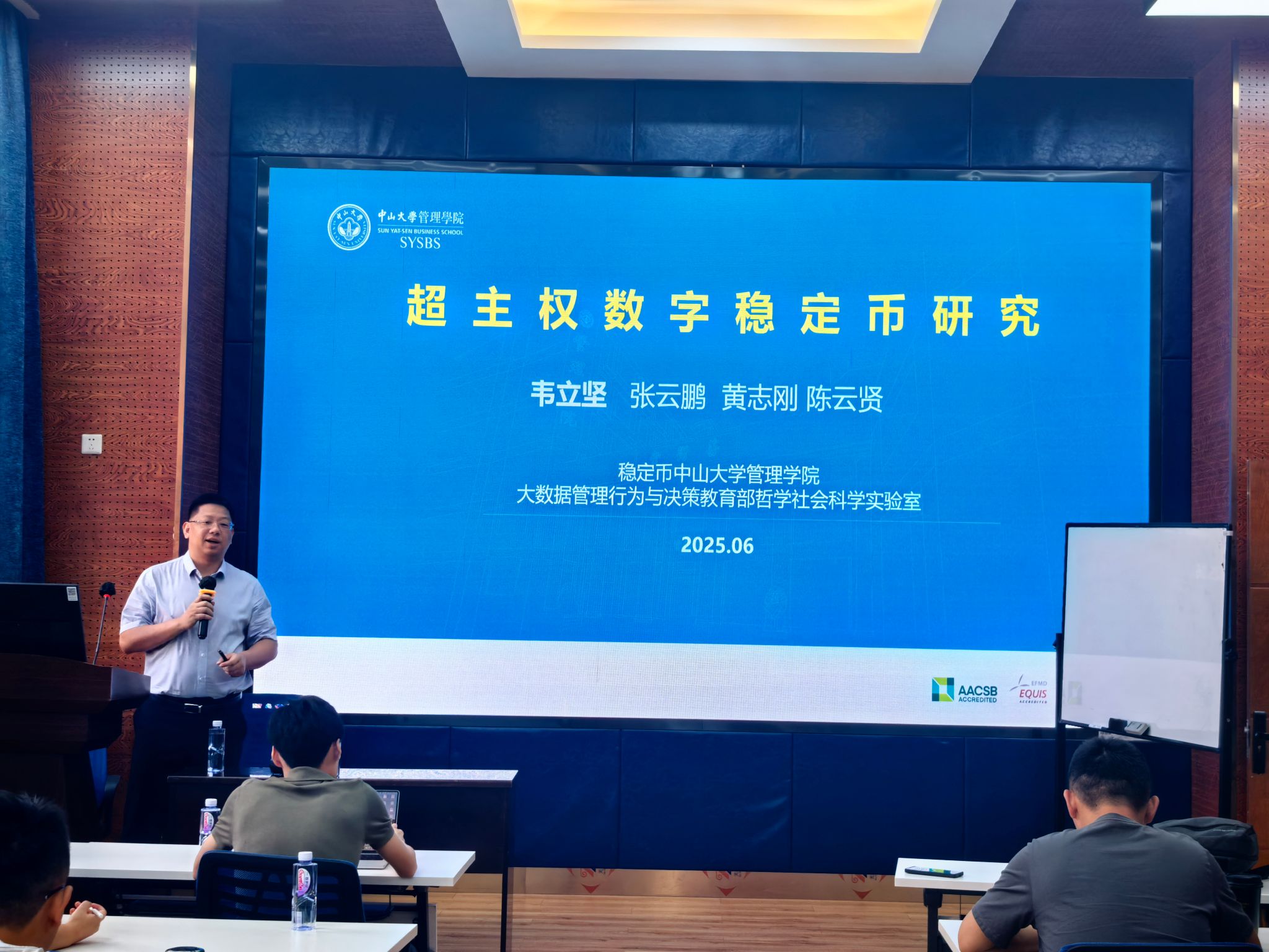2025年6月10日上午,中山大学管理公司韦立坚教授应邀为公司师生带来一场题为“超主权数字稳定币研究”的学术讲座。本次学术活动由bevictor伟德副经理马锋教授主持,公司部分教师及研究生参加了此次活动。马锋副经理首先介绍了韦立坚教授的学术背景与成就,并代表公司对韦立坚教授表示热烈的欢迎与诚挚的感谢。