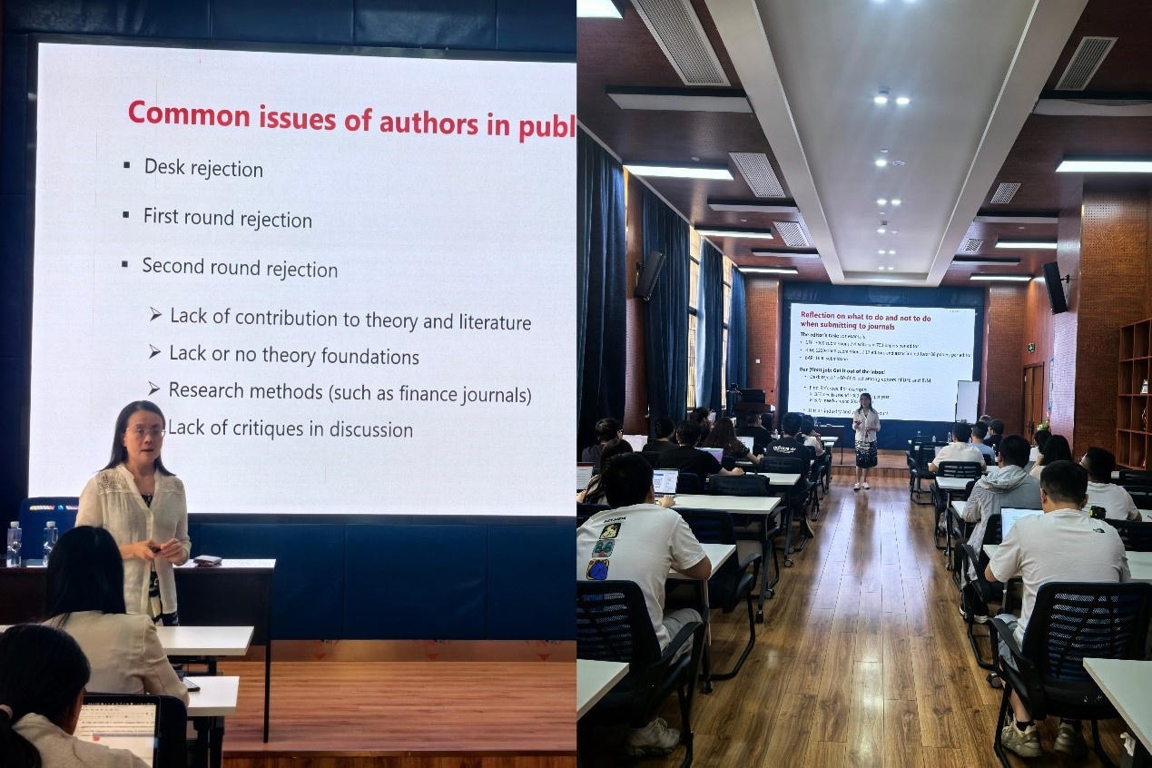 2025年6月12日下午,英国朴茨茅斯大学商公司会计与金融学刘嘉教授应邀为公司师生作题为“How to avoid potholes on the road to publication”的学术讲座。本次活动由bevictor伟德副经理马锋教授主持,公司部分教师及研究生参加了此次讲座。马锋副经理简要介绍了刘嘉教授的学术背景与研究成就,并代表公司对刘教授的到来表示热烈欢迎与诚挚感谢。
