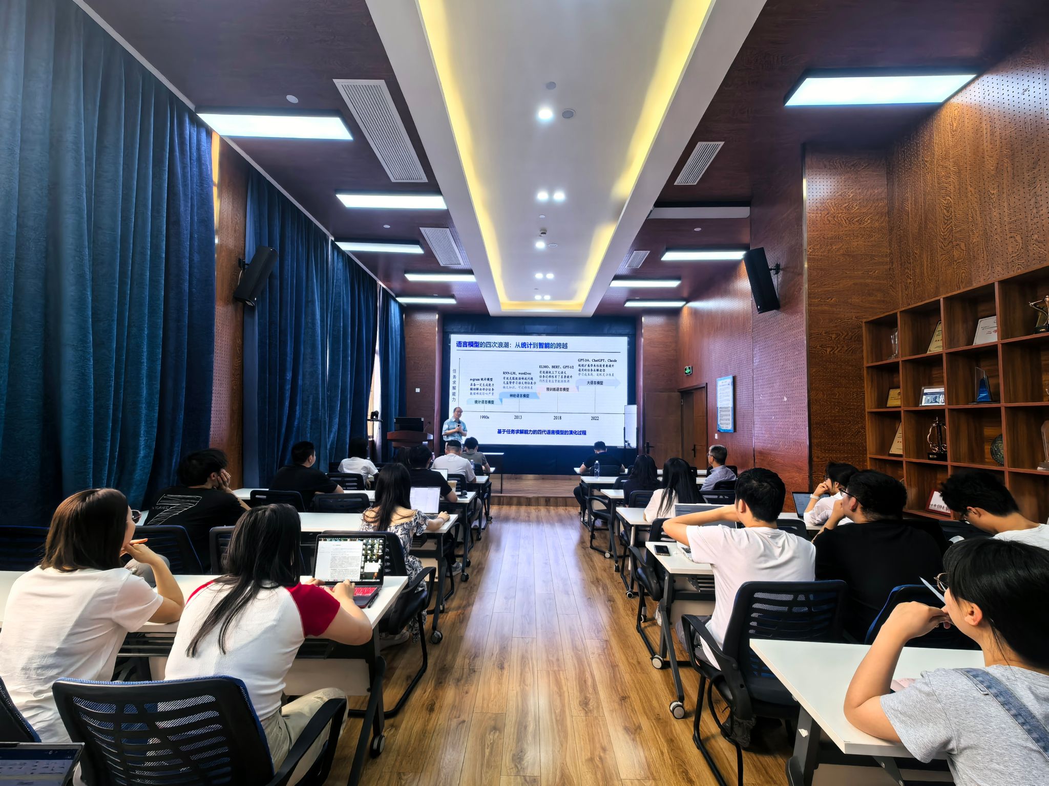在互动环节,现场师生踊跃提问,围绕计算成本、大模型研究现状与期刊发表、金融与社会信用建模等问题展开了深入交流。余乐安教授耐心细致地回应了师生的提问,并进一步分享了其团队在语义增强方面的探索与思考,介绍了具体研究过程中的技术细节与挑战。