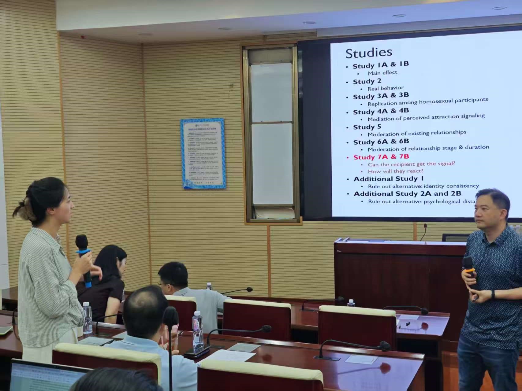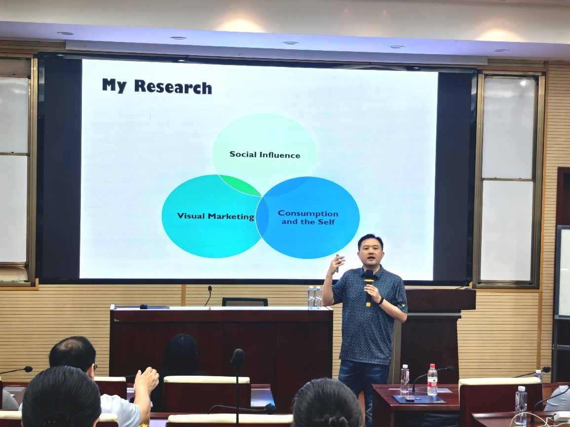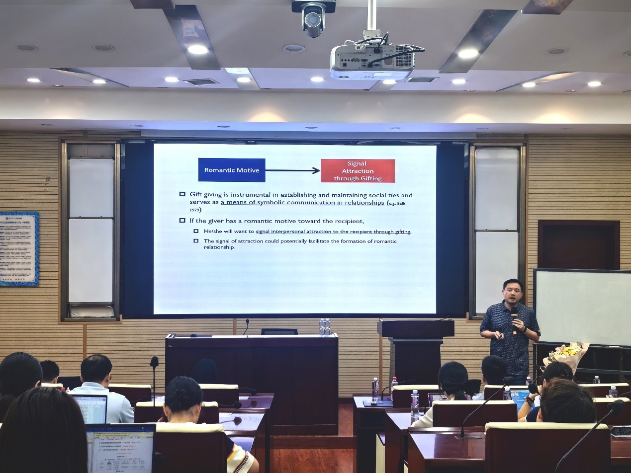 聘任仪式结束后,姜宇威教授应邀为公司师生开展题为“Romantic Gifting ”的讲座,深入探讨在亲密关系中赠礼情境下对性别化产品偏好的问题。讲座由公司市场学系主任范春梅副教授主持。