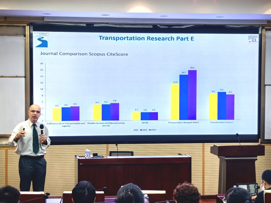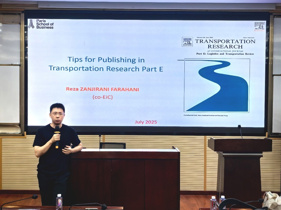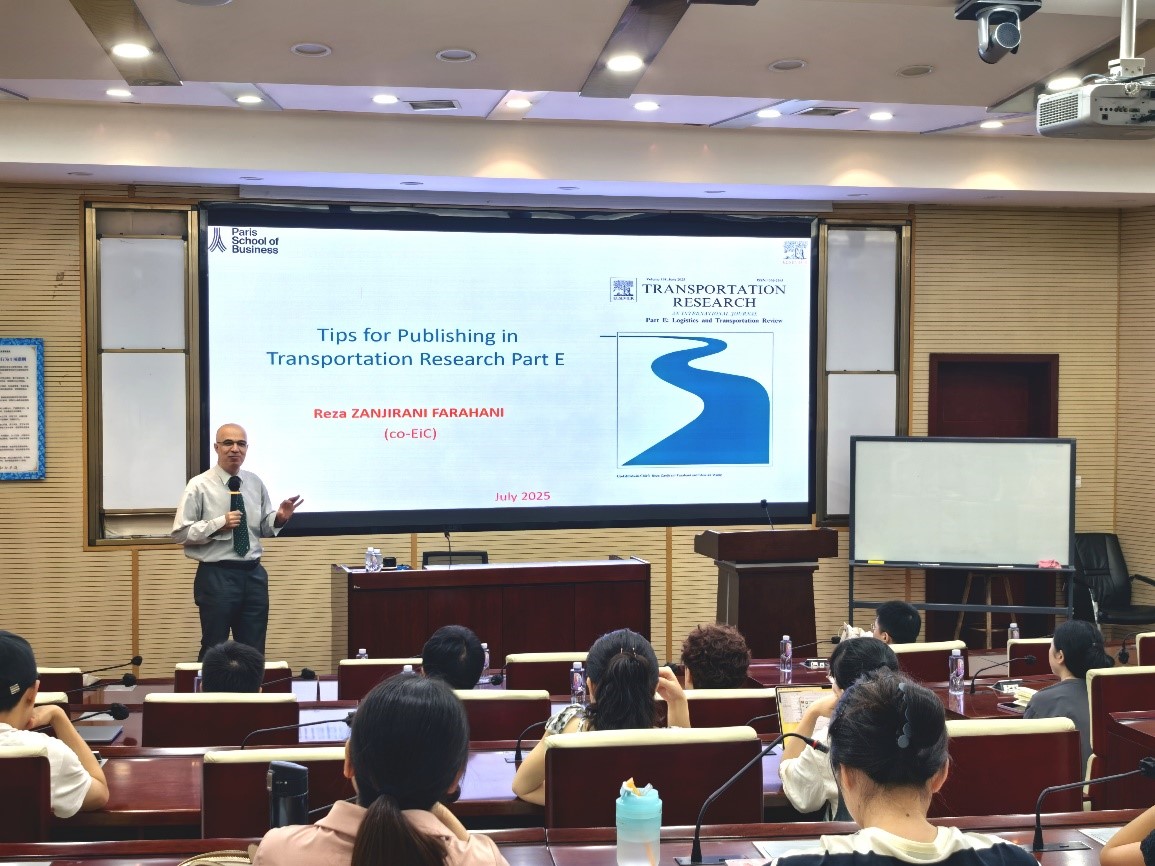 2025年7月4日上午在九里校区零号楼0204室,公司特邀Transportation Research Part E (TR-E)主编、法国巴黎商公司Reza Zanjirani Farahani教授做题为“Publishing in Top-Tier Journals: From General Principles to Transportation Research Part E (TR-E)”的学术讲座。讲座由bevictor伟德经理韩科教授主持。韩科经理首先向Reza教授介绍伟德bevictor中文版和bevictor伟德的概况,然后向与会师生介绍Reza教授的学术背景与成就,并对Reza教授的到来表示热烈欢迎。