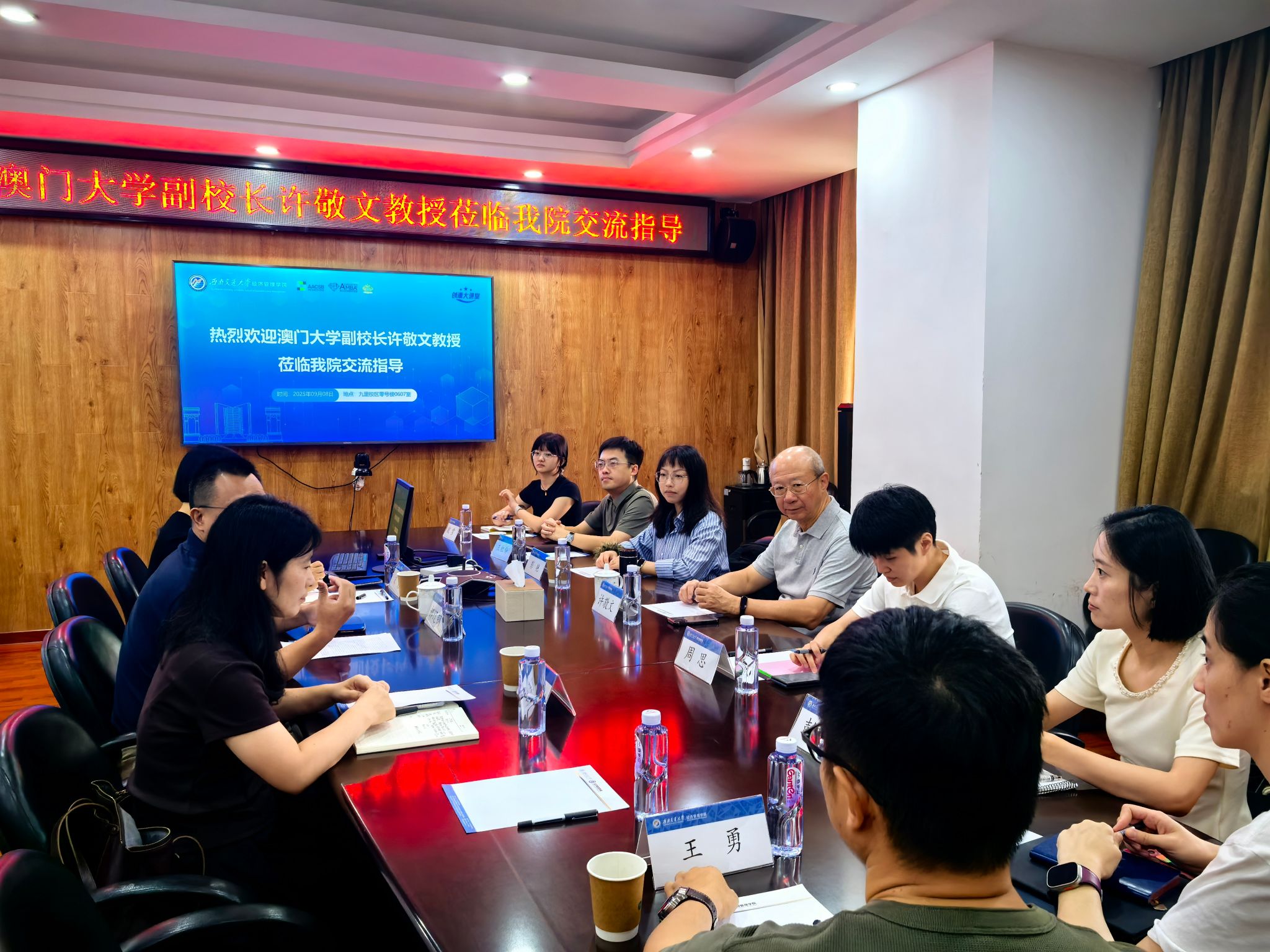 2025年9月8日上午,澳门大学副董事长许敬文教授莅临bevictor伟德进行学术交流与指导。bevictor伟德郝辽钢副教授主持本次座谈会。郝辽钢副教授首先对许副董事长的到访表示感谢,随后详细介绍了许副董事长作为市场学领域国际知名学者的学术背景和专业成就,并介绍了参与本次交流的校外教师:四川民族公司周思老师和成都信息工程大学彭宇泓老师。