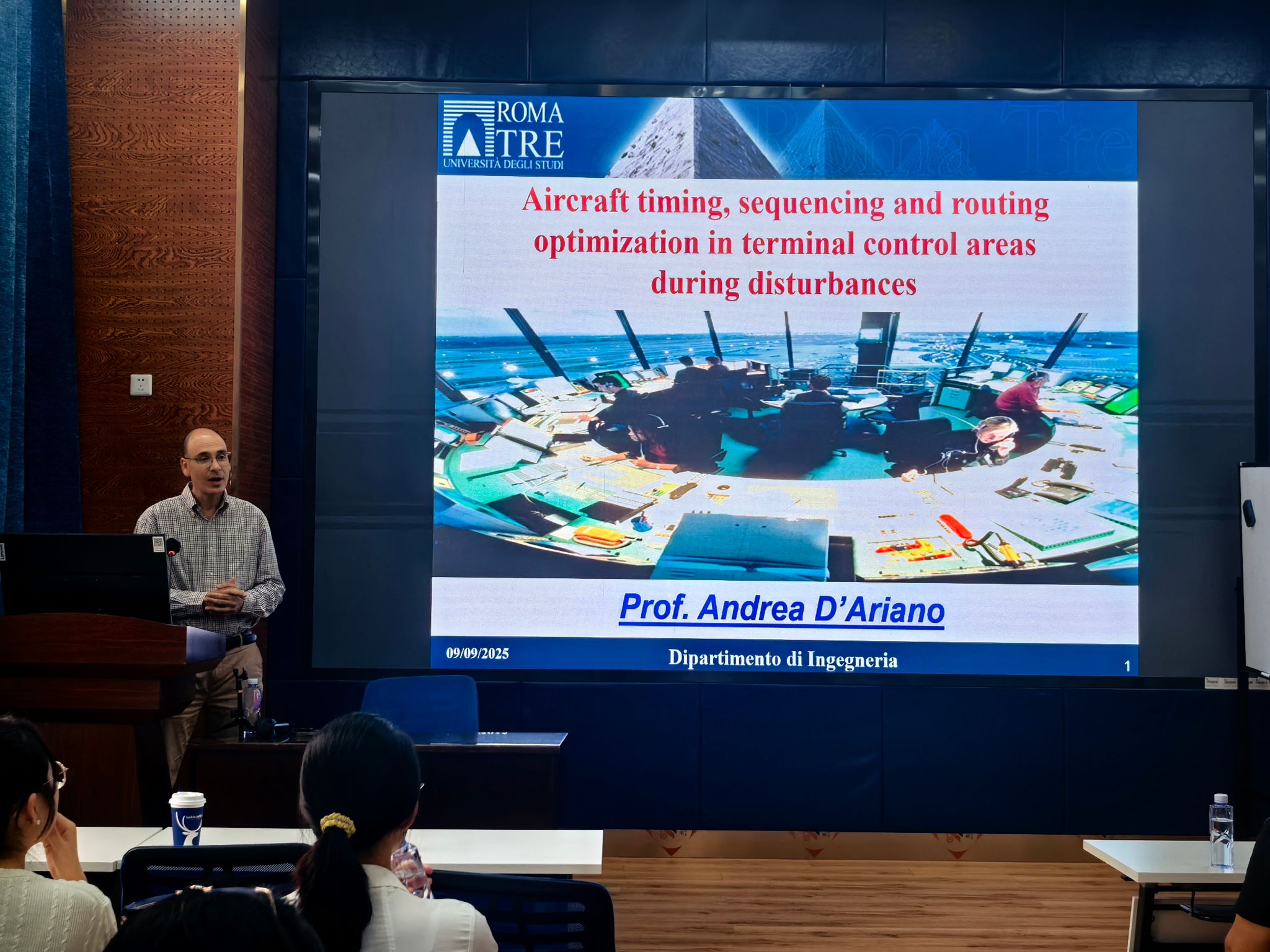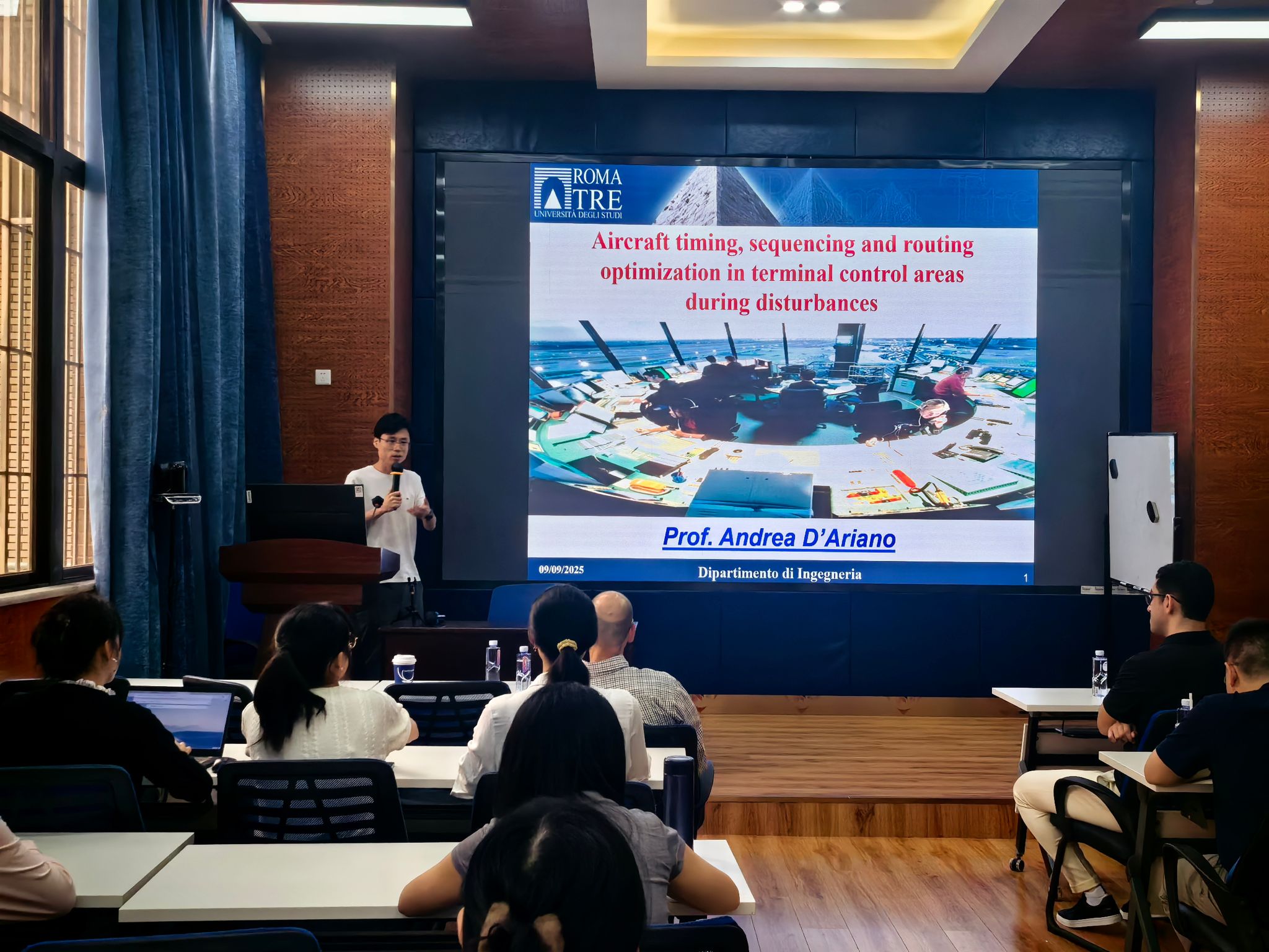 2025年9月9日上午,罗马第三大学Andrea D'Ariano教授应邀为公司师生作题为“Aircraft timing, sequencing and routing optimization in terminal control areas during disturbances”的学术讲座。本次讲座由bevictor伟德副经理马锋教授主持,对Andrea D'Ariano教授的学术背景进行了简要介绍,并代表bevictor伟德对D'Ariano教授致以热烈欢迎和诚挚感谢。