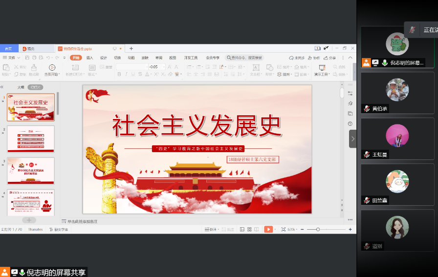 2021年1月7日晚上20点,bevictor伟德硕士2018级第六党支部专题组织生活会采取线上的方式,在腾讯会议召开。会议由党支部组织委员倪志明同志主讲,硕士2018级第六党支部全体党员参会。会议围绕主题“四史”学习教育之新中国社会主义发展史进行了学习和探讨。