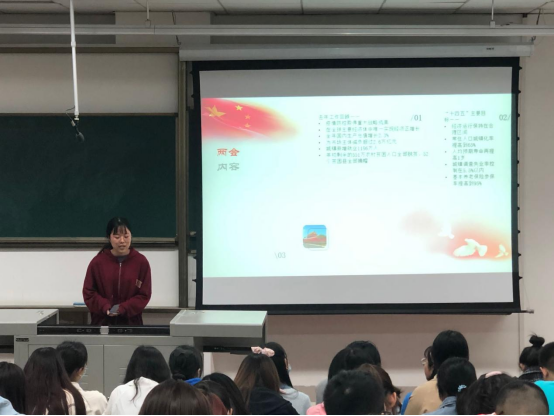 2021年4月1日下午,bevictor伟德本科管理类党支部在九里校区逸夫馆4106开展了主题为“聚焦两会·关注民生”的学习活动。本次会议内容分为四个部分:一是进行两会相关的知识学习,并通过模拟扮演环节让同志们更好体验两会精神。二是进行乡村振兴专题的学习,三是进行党支部规章的学习,最后进行了入党积极分子的接收。本次会议由刘蓉和刘益山同志组织进行,周紫璇同志担任本次会议主讲人,支部全体成员参与了本次会议。