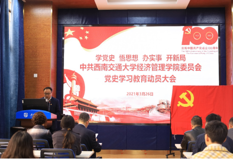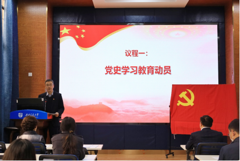 王斌同志强调全院师生尤其是全体党员要以习近平新时代中国特色社会主义思想为指导,学以觉悟,提高政治站位,深刻领会党史学习教育的重大意义,深刻领悟“为什学”,“学什么”以及“怎么学”,把思想和行动统一到党中央的决策部署上来;要根据党中央和公司党委的要求,结合公司实际,扎实把党史学习教育组织好、开展好,确保取得实实在在的成效。