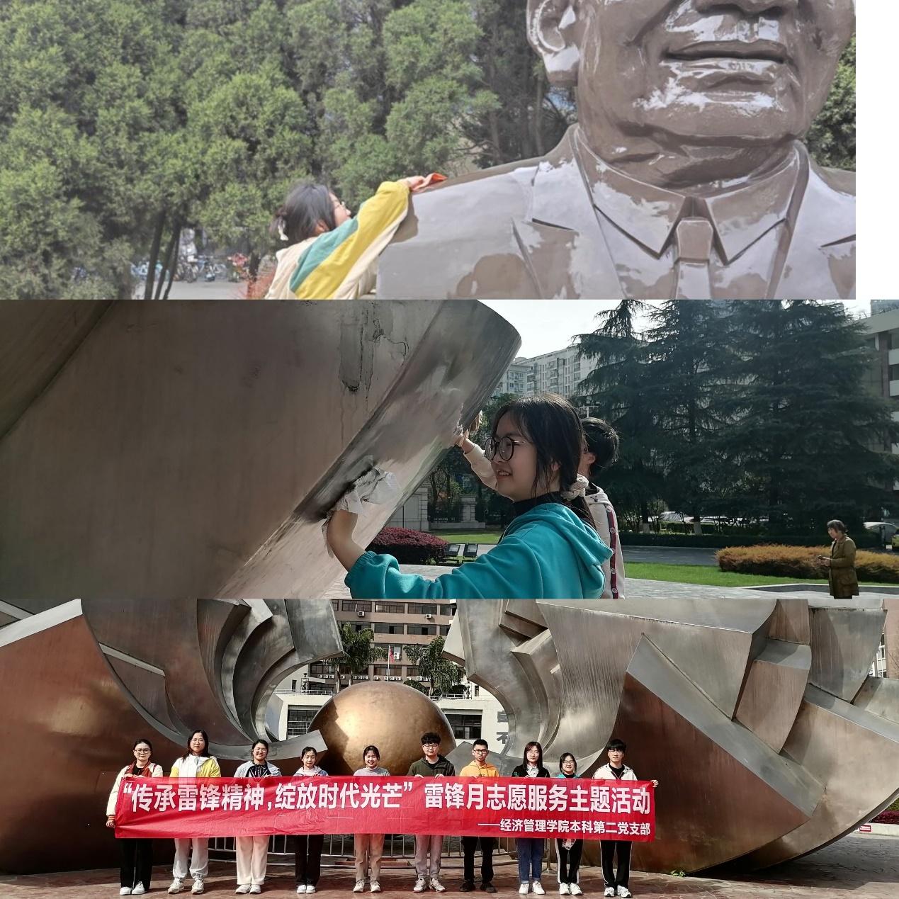 擦去雕塑上的浮尘,清洗雕像的过程不仅是一次志愿活动,也是缅怀先辈、深受激励的过程,志愿者们拿起抹布,擦去雕塑上的浮尘,身为西南交大的学子,也应当同前辈一般,筚路蓝缕不懈奋斗,坚定梦想和信念,与祖国共成长。
