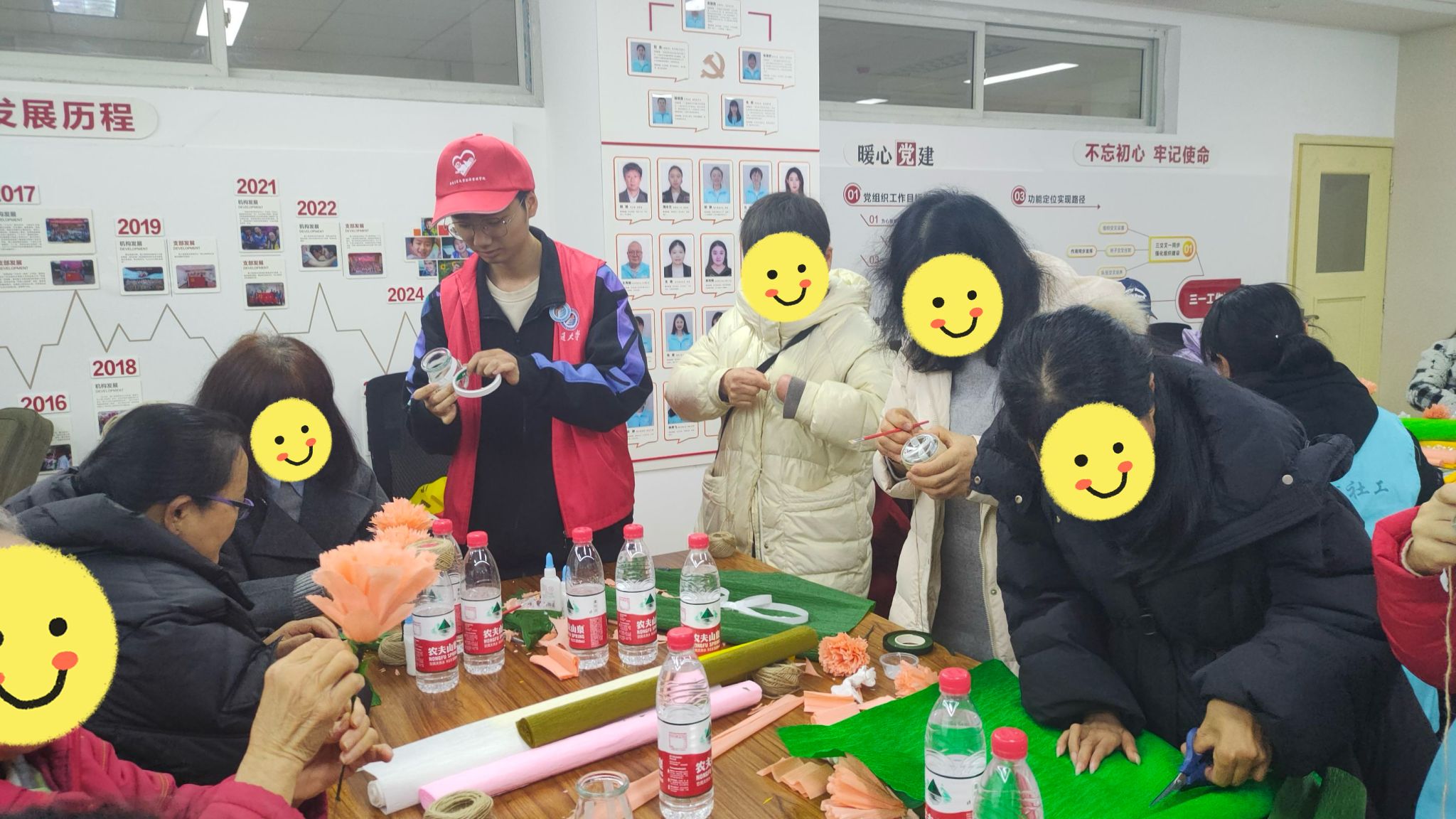 3月6日,支部同学们在善工家园帮助残障人士制作手工花。从裁剪花瓣到固定花枝,大家配合默契,当色彩缤纷的纸花在指尖绽放时,每个人脸上都洋溢着成就的喜悦。这些亲手制作的花朵,不仅传递着温暖,更寄托着对美好生活的期盼。