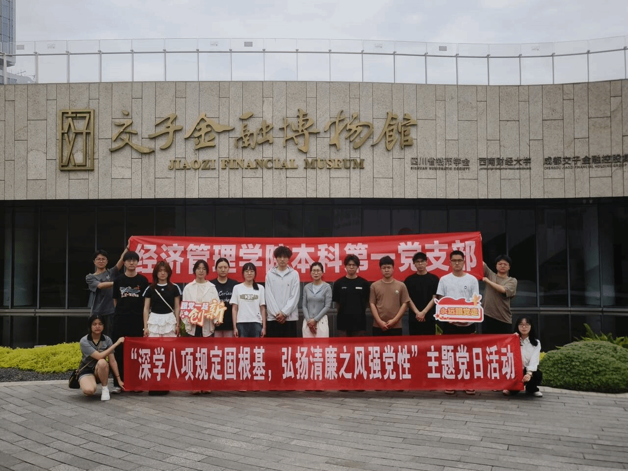 本次主题党日活动不仅是一次生动的思政实践,更是一次沉浸式的党课理论学习,活动以交子红色货币金融文化为纽带,实现了历史教育与党性锤炼的有机结合。未来,本科第一党支部将继续创新学习教育形式,持续深入贯彻中央八项规定精神学习教育,不断擦亮党的作风建设“金色名片”,为支部党员与支部建设在新时代背景下,提升党性修养,弘扬清廉之风,注入强大的红色动力。