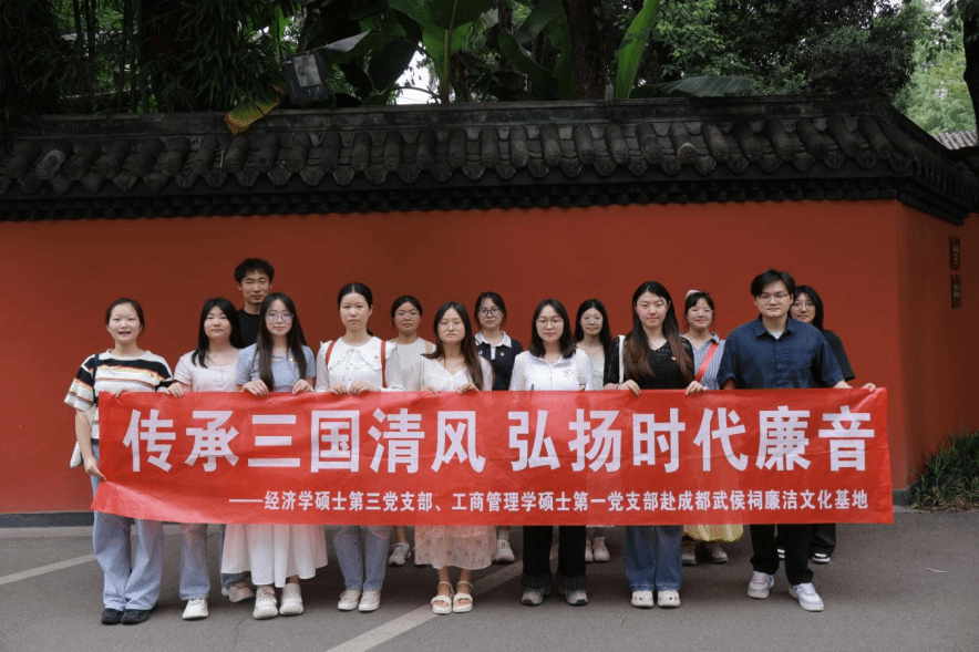 为深入学习贯彻党的二十大和二十届三中全会精神,扎实推进廉洁文化建设,增强研究生党员的廉洁自律意识。根据伟德bevictor中文版第十二期研究生党建“领航先锋”工程活动工作要求,2025年5月15日,bevictor伟德经济学硕士第三党支部联合工商管理学硕士第一党支部前往成都武侯祠廉洁文化基地开展“传承三国清风 弘扬时代廉音”主题教育实践活动。通过实地参观学习、聆听廉洁文化讲解,深刻感悟诸葛亮等历史名臣清正廉明、忠贞报国的精神品格。