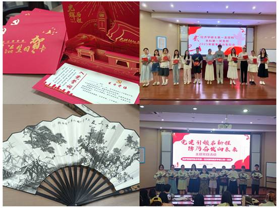 随后,活动举行了夏季政治生日仪式。支部书记为过政治生日的党员逐一颁发了精心准备的贺卡和礼物,现场气氛庄重而温馨。毕业生党员们也收到了寓意深远的“岁寒三友”(松、竹、梅)主题折扇。礼物取松之刚直、竹之谦逊、梅之高洁之意,寄托着党组织对毕业生党员“持清风之扇,行廉洁之路”,永葆清正廉洁政治本色的殷切嘱托。