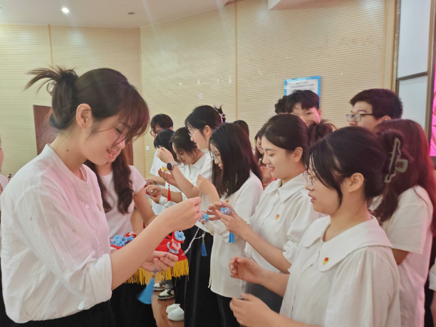 2025年 5 月 8 日,两支部成员集中学习理论知识、以创意实践深化理解。成员们用“扭扭棒”等环保材料,创作出象征“清廉”的莲花“清莲挂件”,将廉洁元素融入创意实践,使党课更具感染力,让清正廉洁的思想深深扎根于支部成员心中。